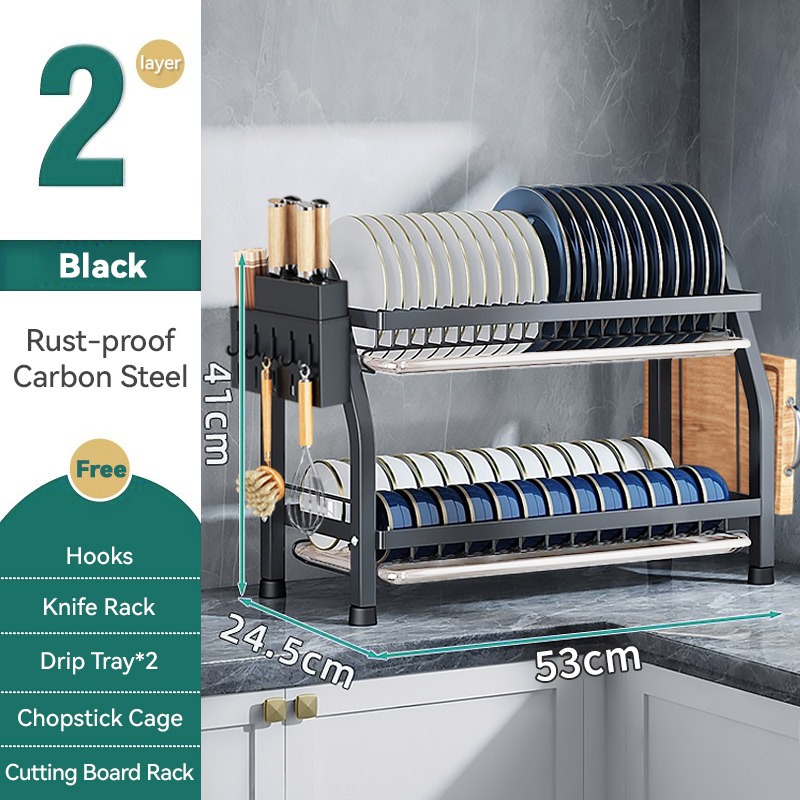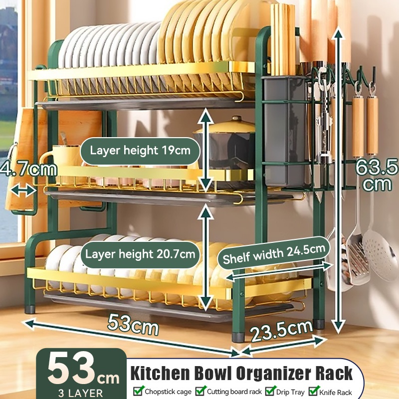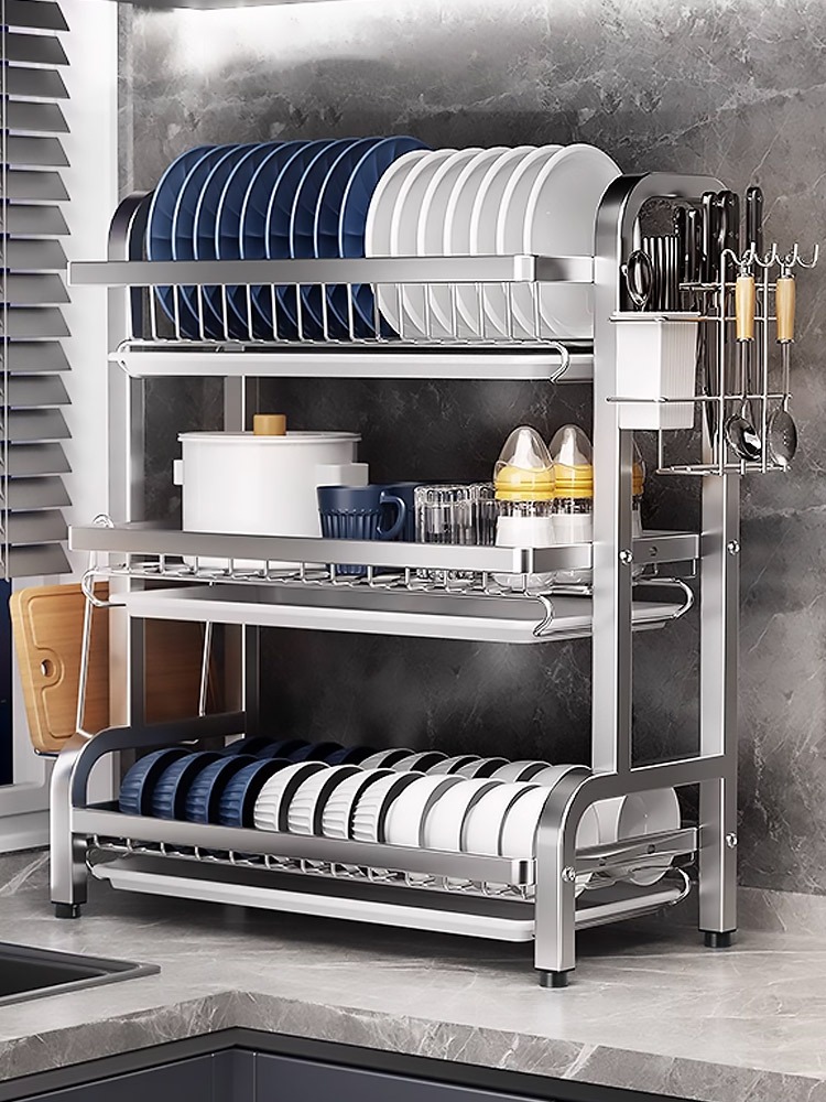 Rak Pinggan Mangkuk Dish Rack Stainless Steel Rak Sinki Dapur Storage Rack Kitchen Dish Drainer Utensil Holder