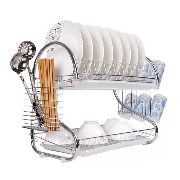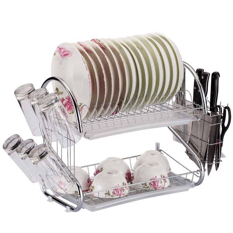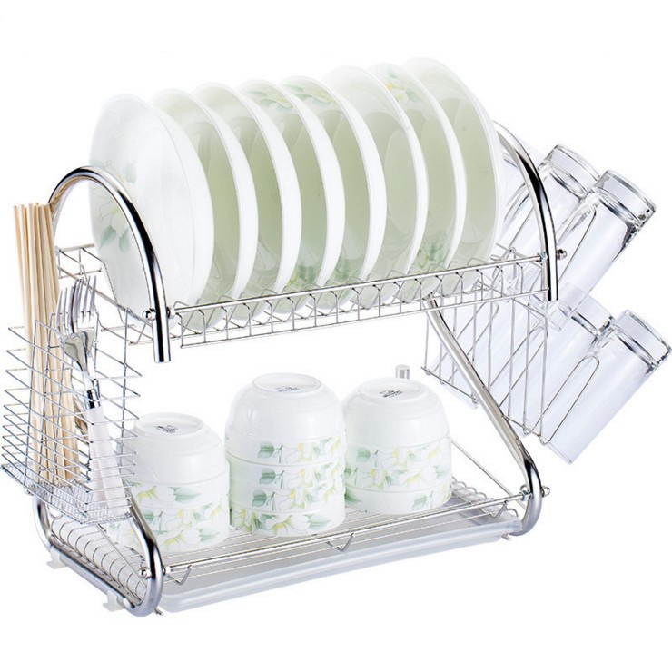 Rak Pinggan Mangkuk Stainless Steel Kitchen Rack Organizer Kitchen Dish Rack Drainer 2 Layer
