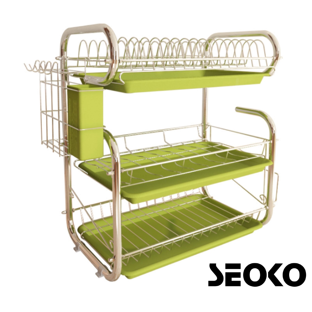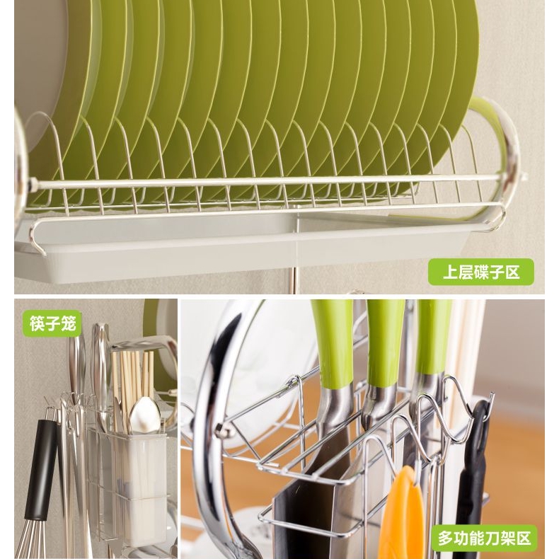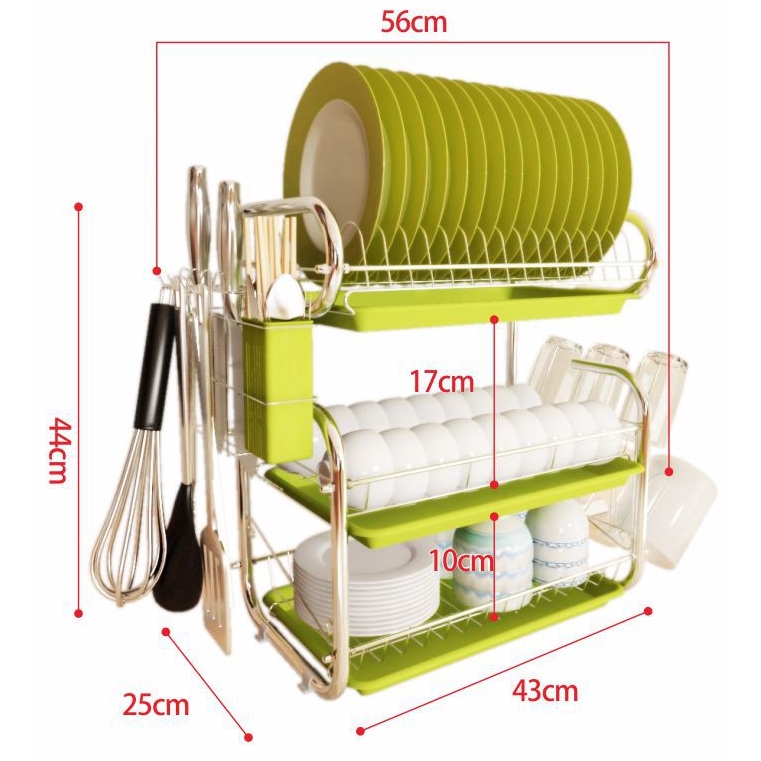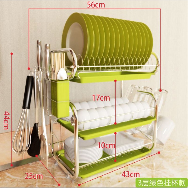 Rak Pinggang Mangkuk Bertingkat Rak Simpan Barang Dapur Besi 3Tier Stainless Steel Kitchen Sinkware Dish Rack withtray#