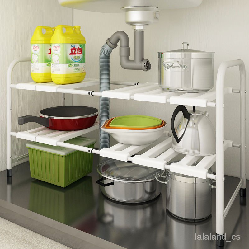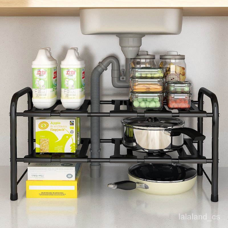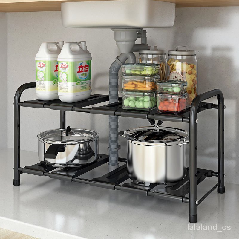 Rak Sinki Teleskopik Penyimpanan Pintar Pelbagai Fungsi Tambah Tinggi Pelbagai Tempat Kejadian Hitam Putih
