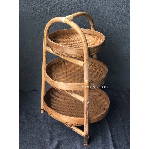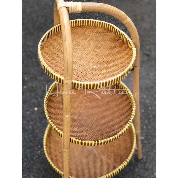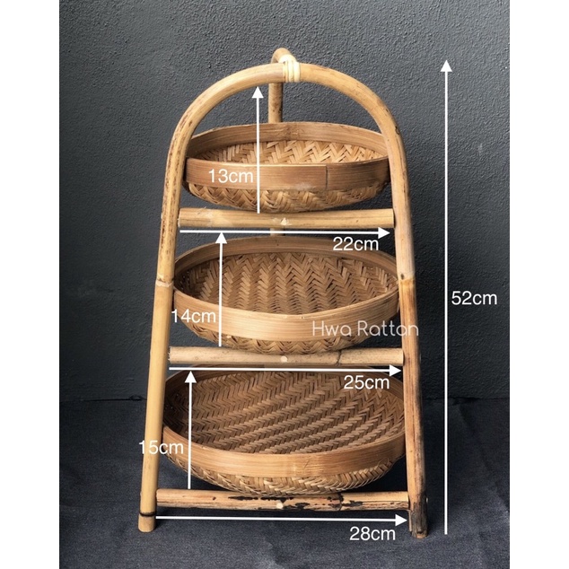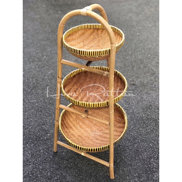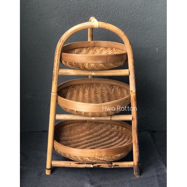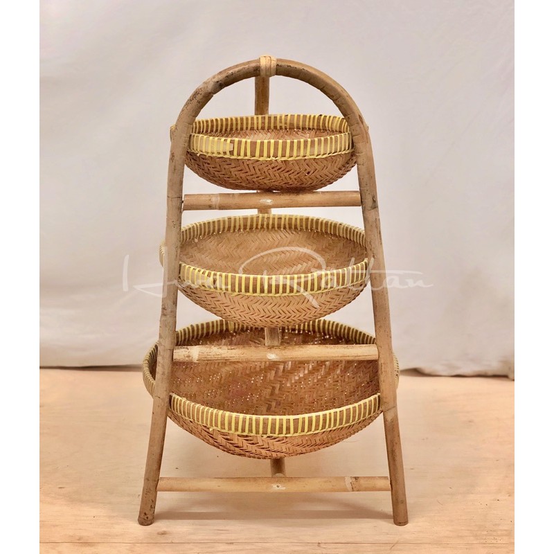 Rak bawang simpanan dapur rotan bakul anyaman buluh 3 tier kitchen rattan rack with baskets / Onion storage rack bamboo