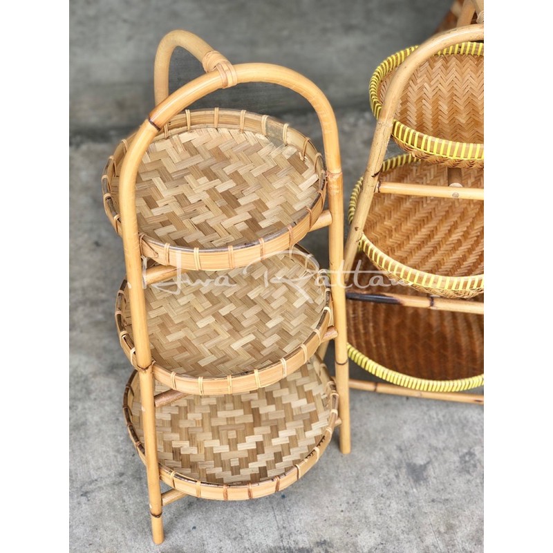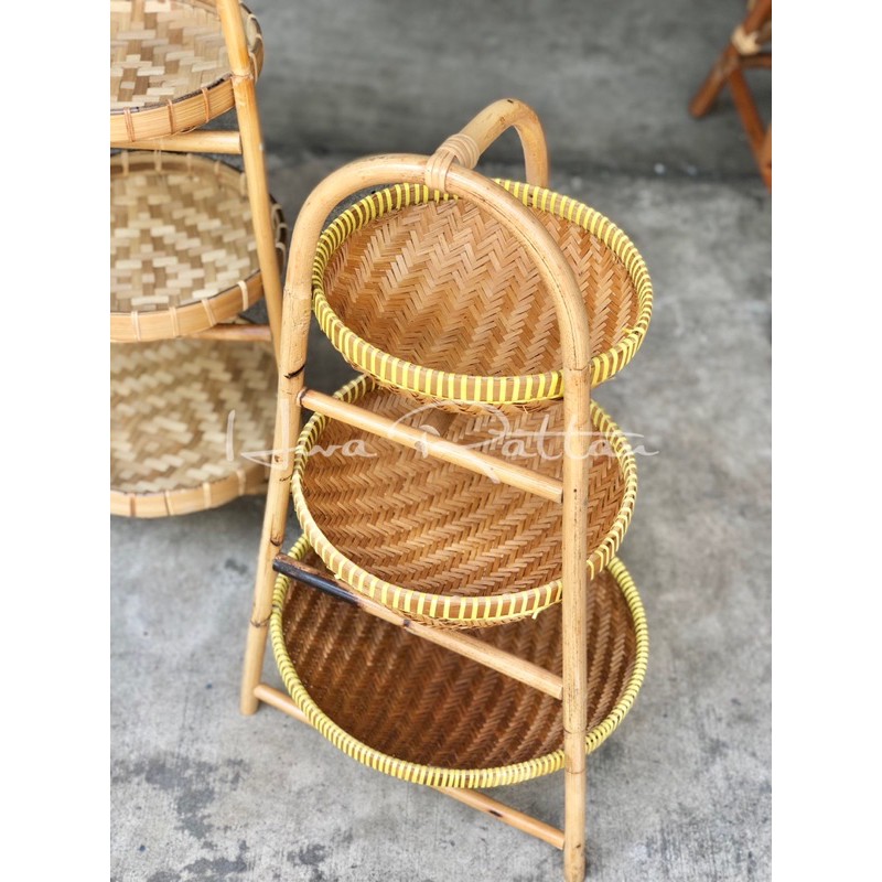 Rak simpanan rotan dgn bakul anyaman / 3 layers rattan rack with baskets / Rak bakul bawang / Onion storage rack
