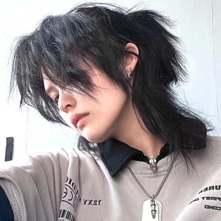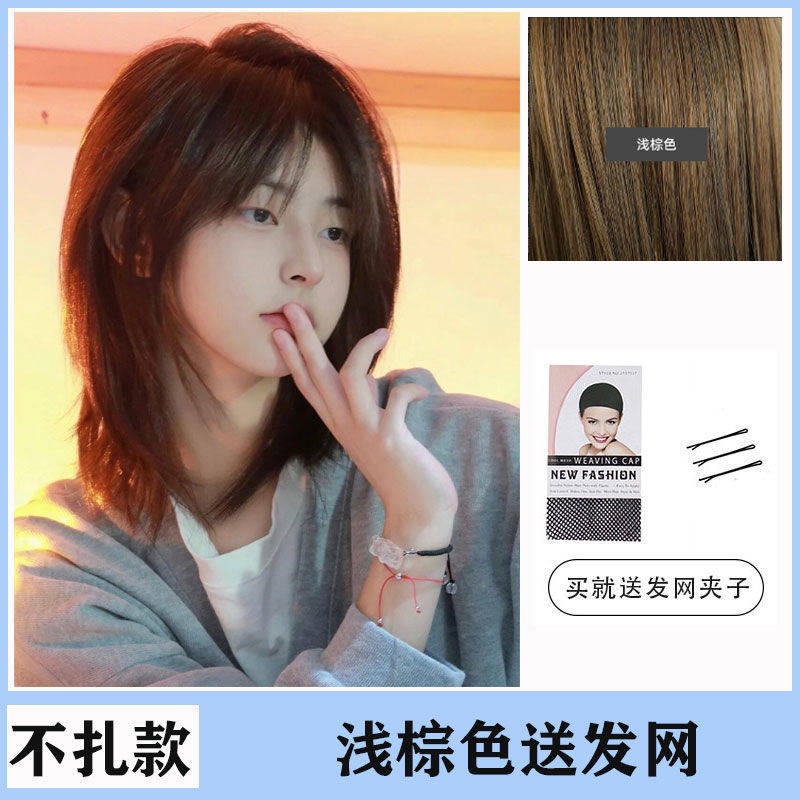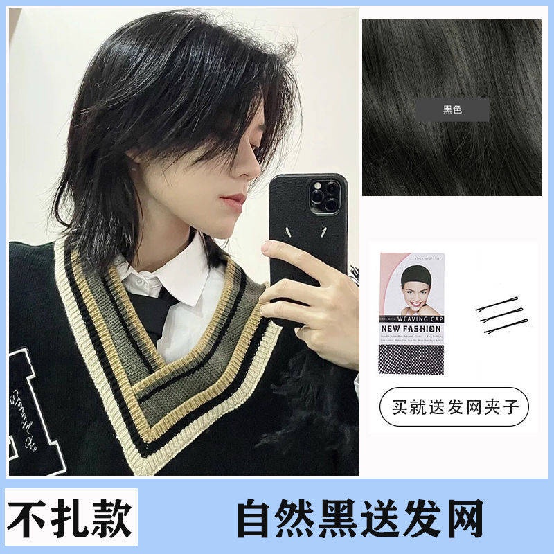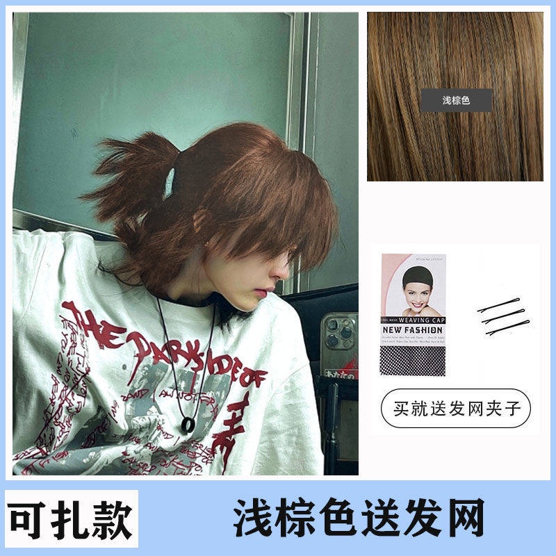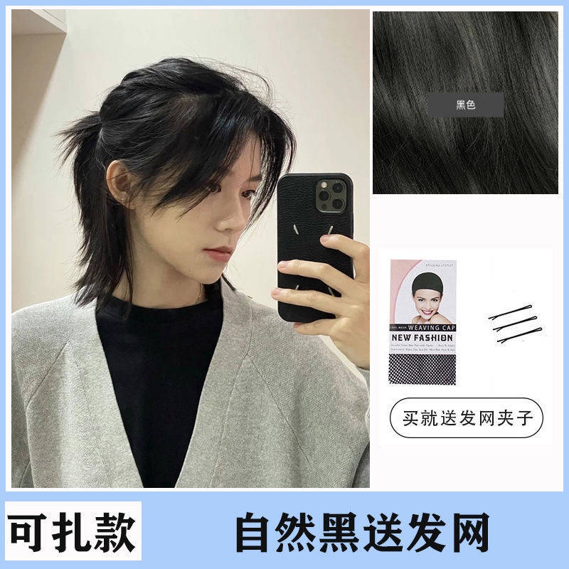 Rambut palsu lelaki Korean Vogue Style Wig Man Samurai head wig Men's Japanese handsome wolf tail is divided into fluffy men's short hair catfish head anime cos full header