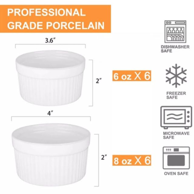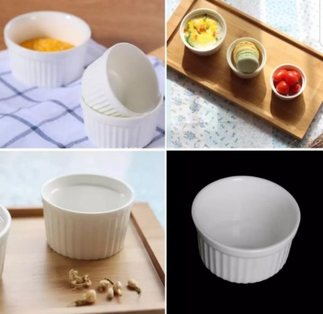 Bekas Ramekin Baking Cup Bowl Souffle Mangkuk Porcelain 1-6pcs Pudding Custard Brulee Dessert