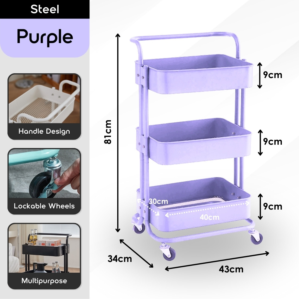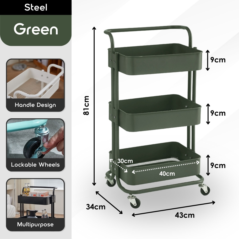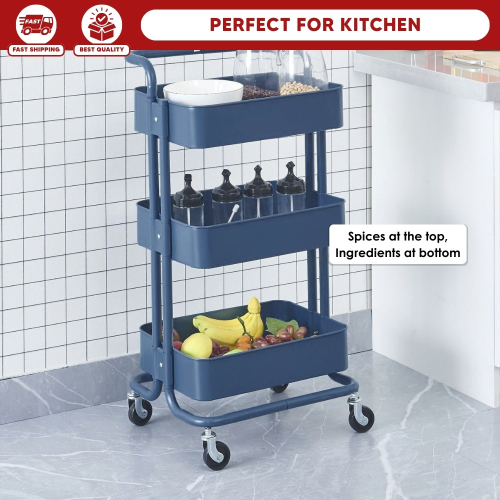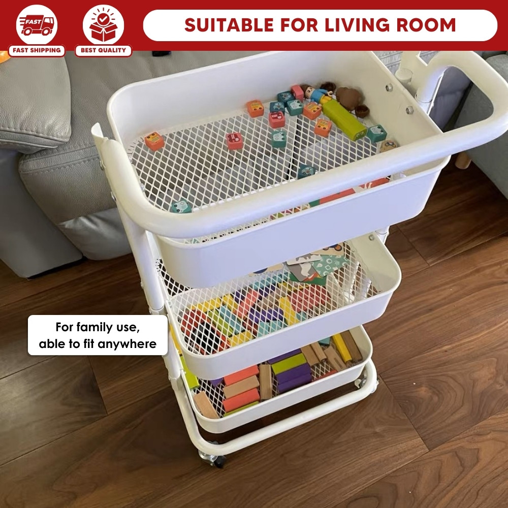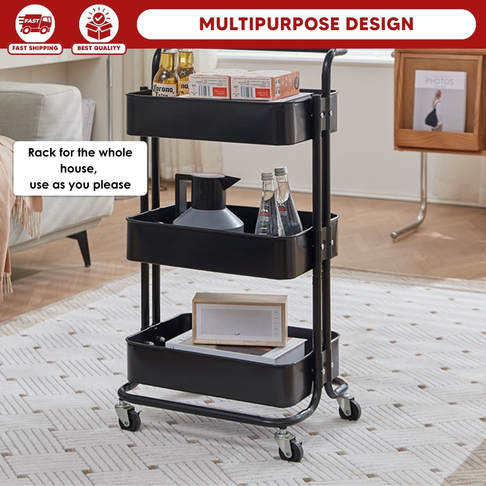 【100% Steel】3 Tiers Full Steel Trolley Rack/Shelves Kitchen Rack/Rak Troli Besi Dapur/Steel Trolley 手推车