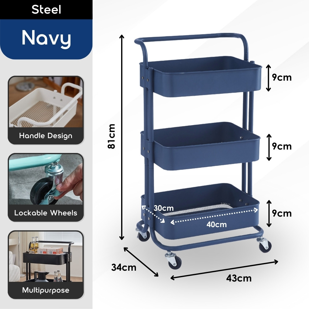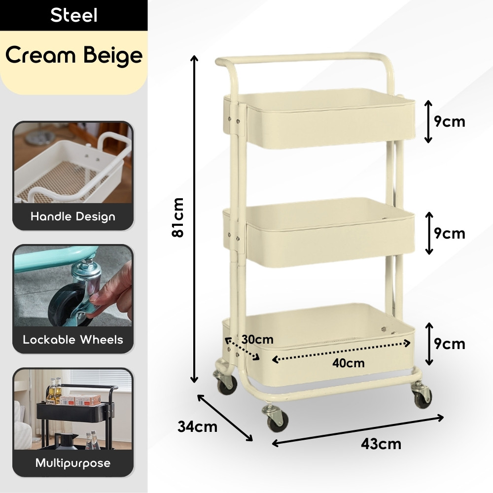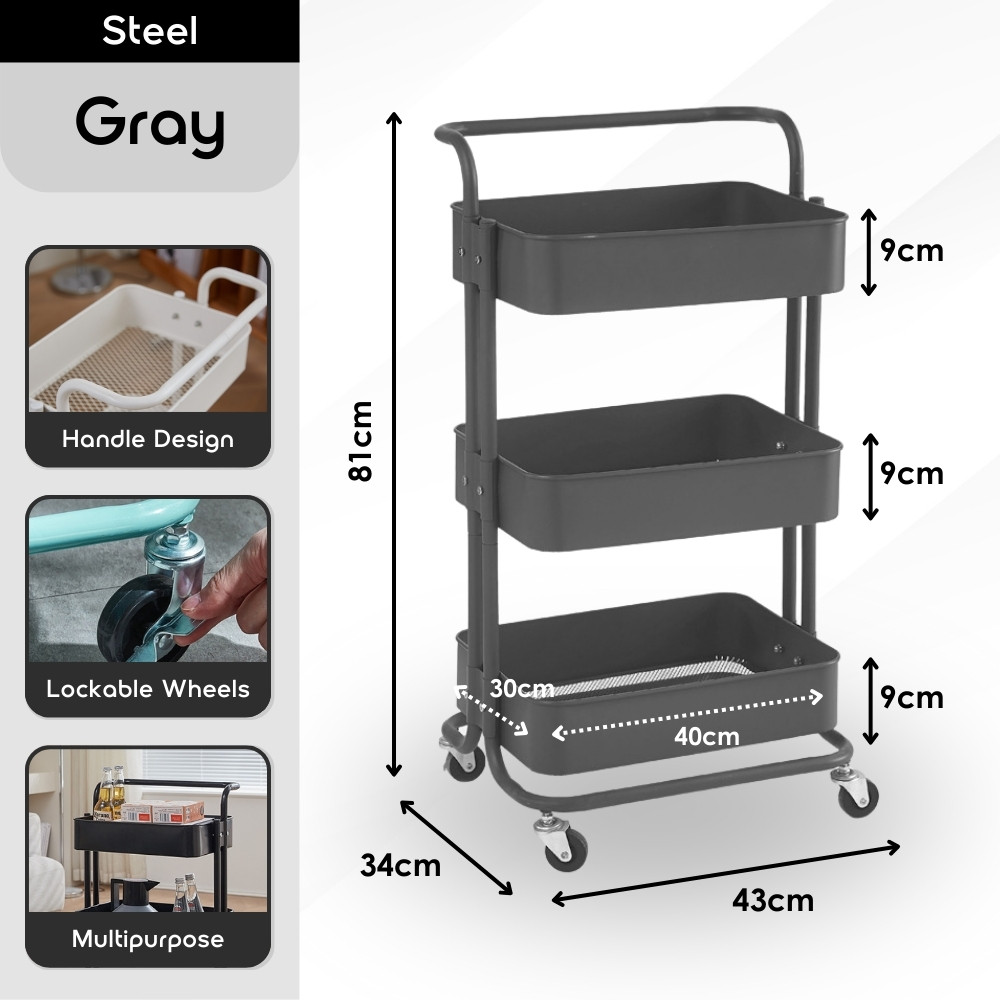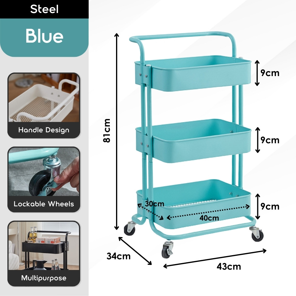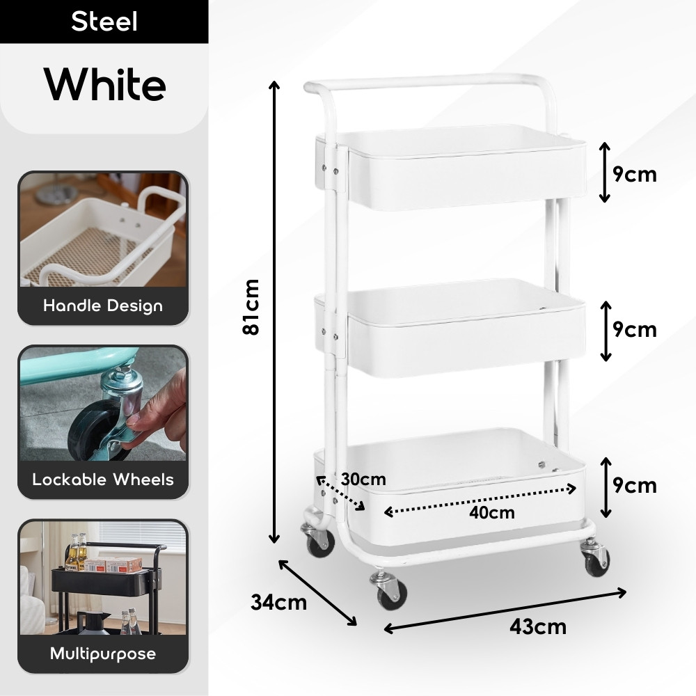 【100% Steel】3 Tiers Full Steel Trolley Rack/Shelves Kitchen Rack/Rak Troli Besi Dapur/Steel Trolley 手推车