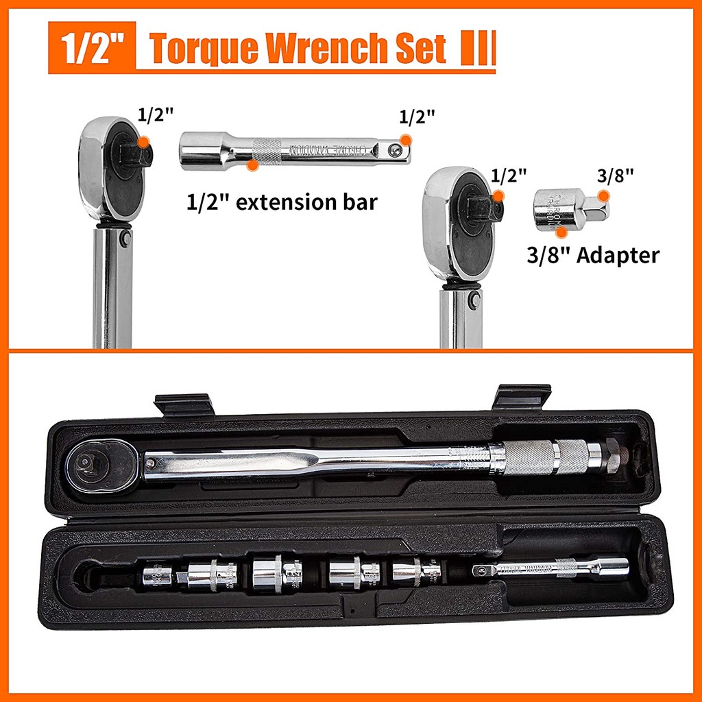 Ratchet Drive Socket Hand Tool 1/2 inch Driver Click Adjustable Micrometer Torque Wrench 28-210nm With Case Adjustable