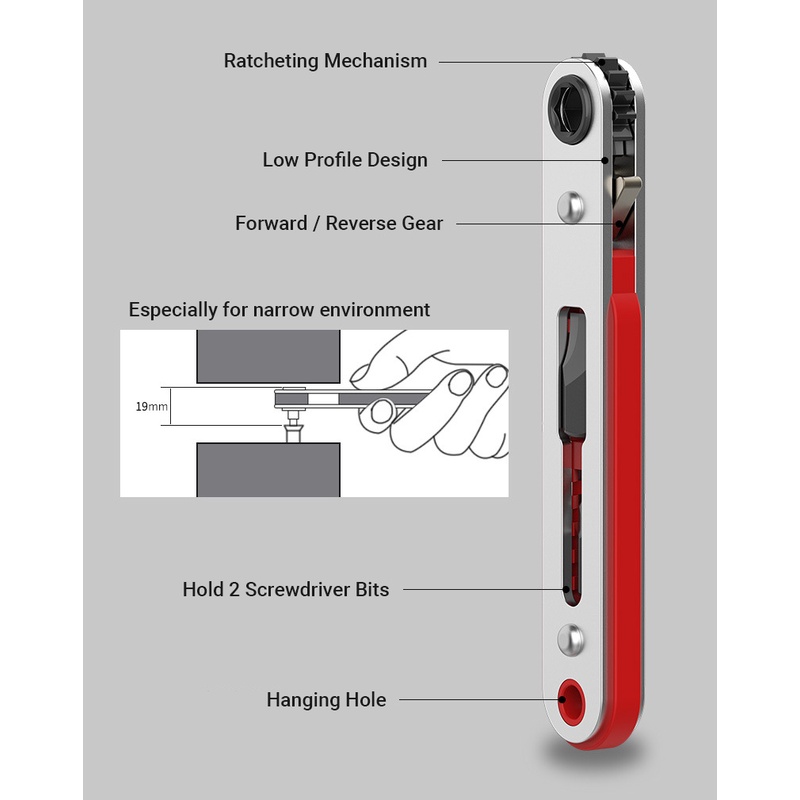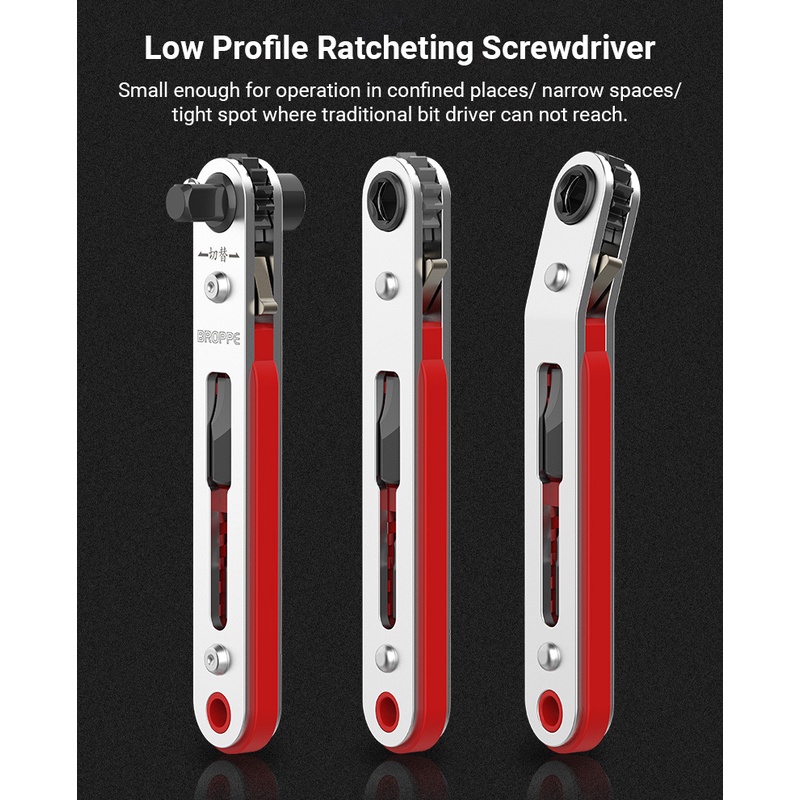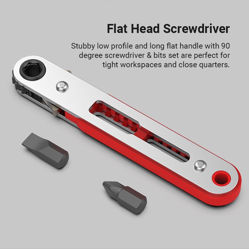 Ratchet Wrench Screwdriver Right Angle Low Profile Ratcheting 1/4 Inch Drive Socket Screwdriver 90 Degree Mini Offset Reversible Drive Handle Pocket Size