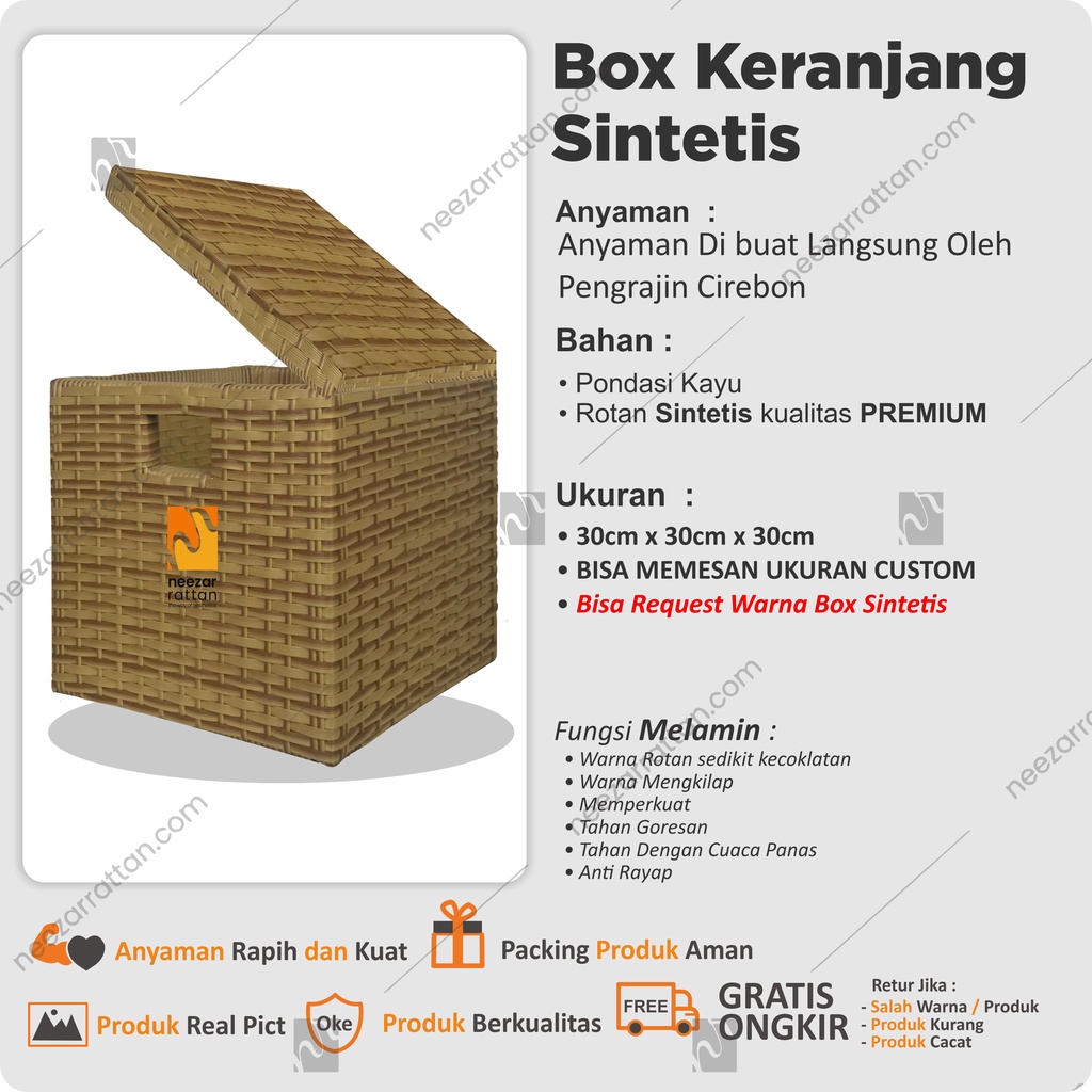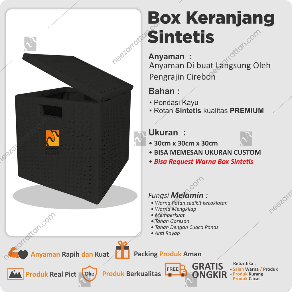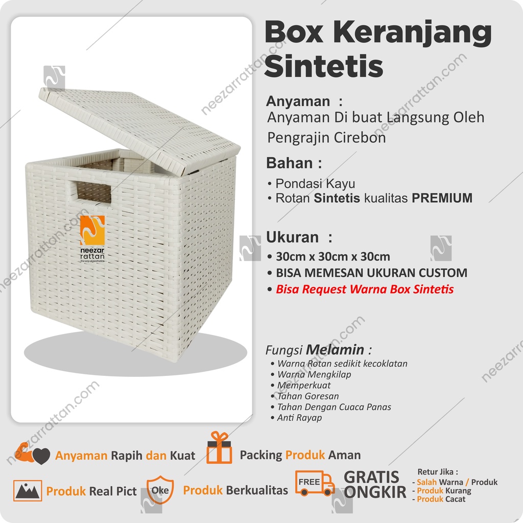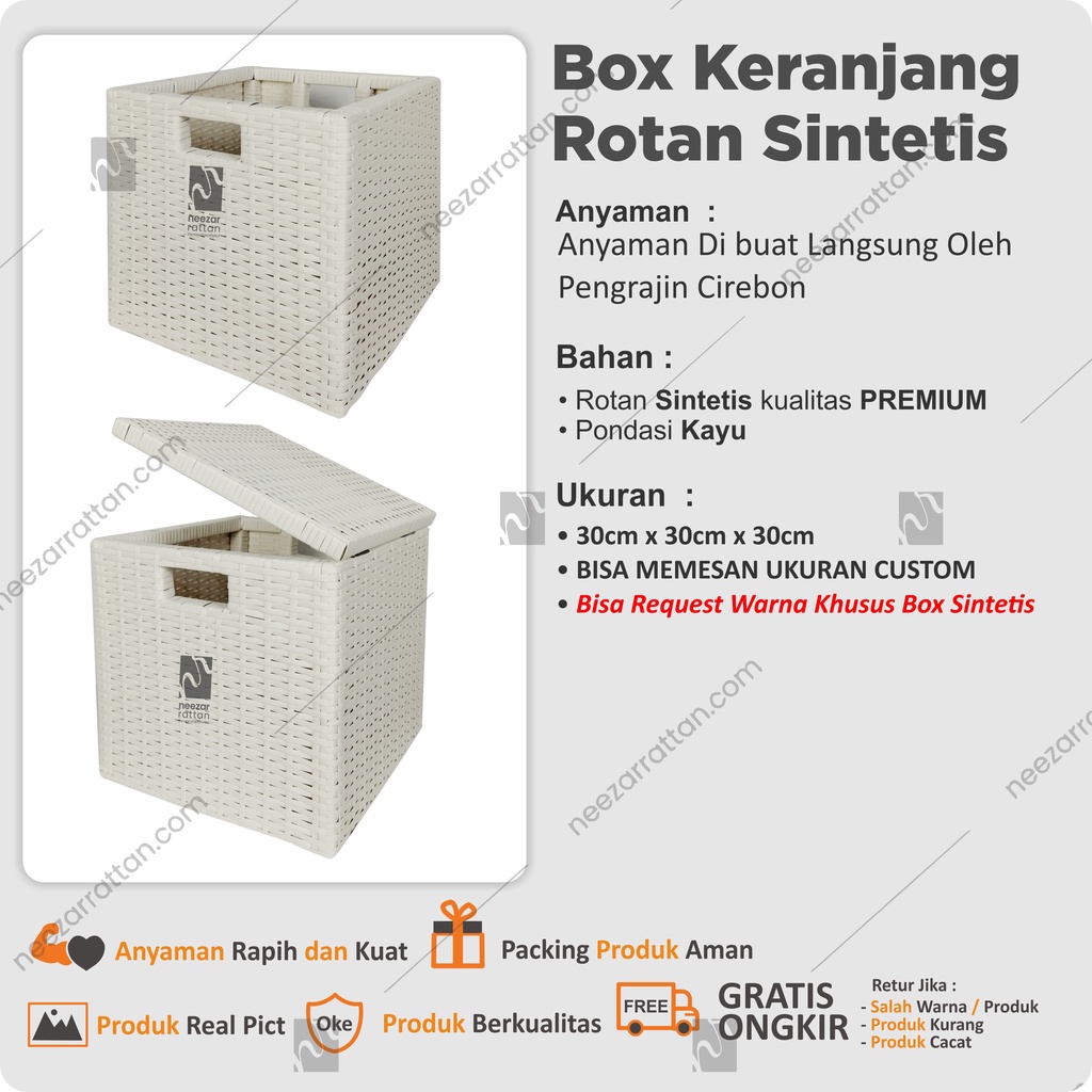 Lombok Woven Lid Rattan Box Basket Rattan Box 30x30x30