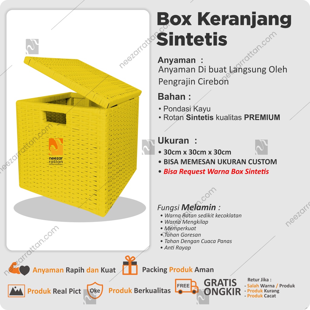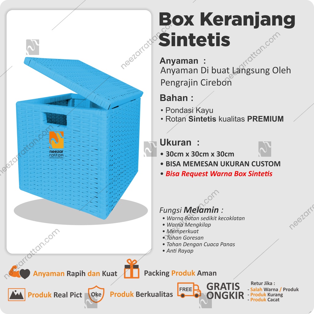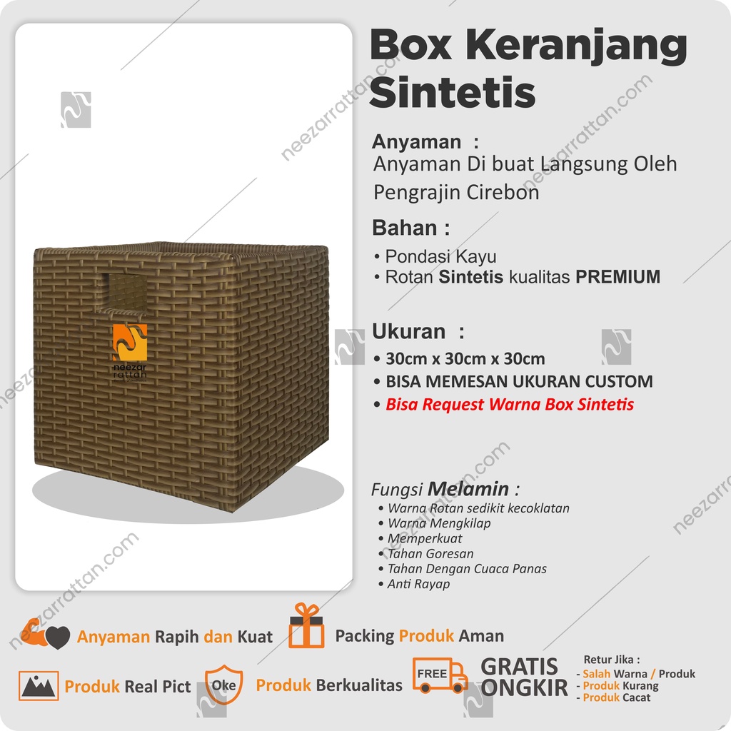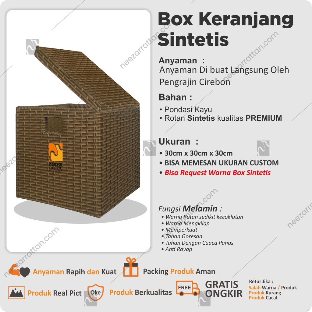 Lombok Woven Lid Rattan Box Basket Rattan Box 30x30x30