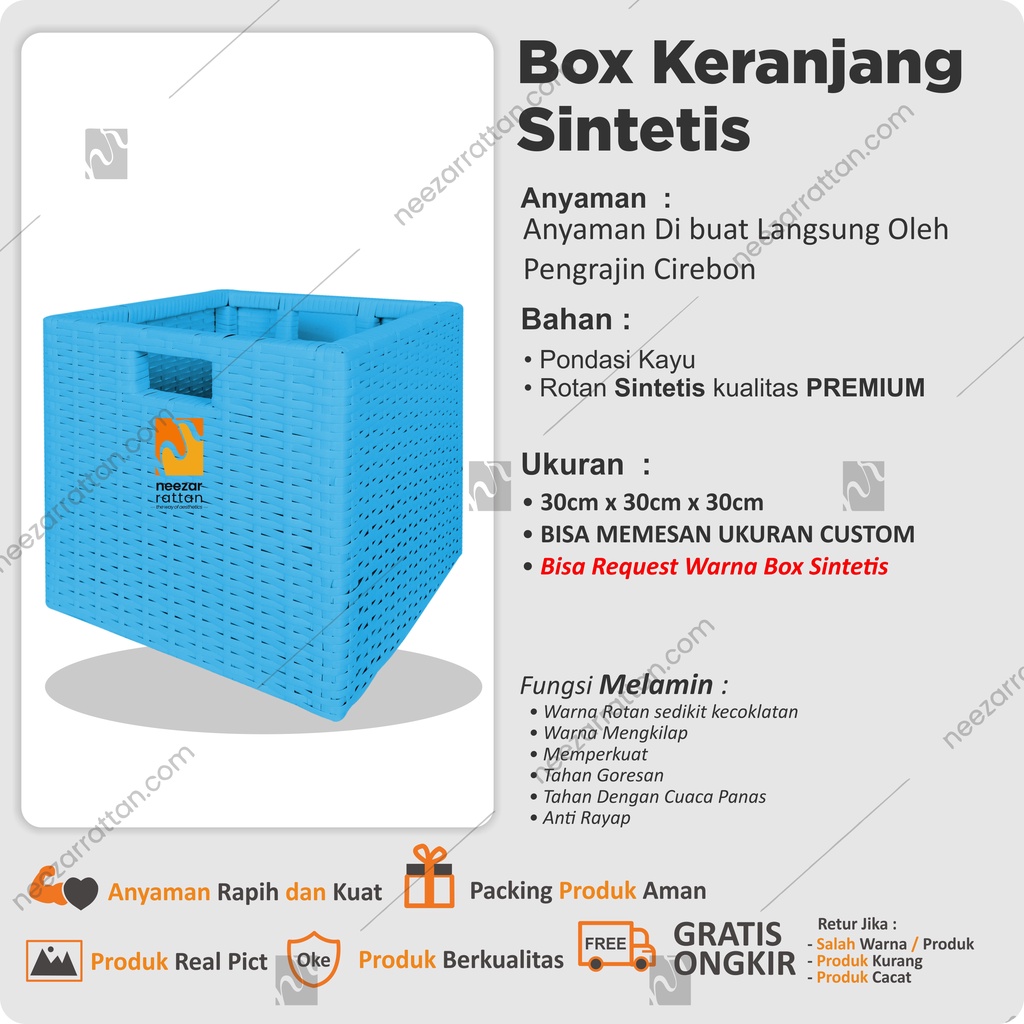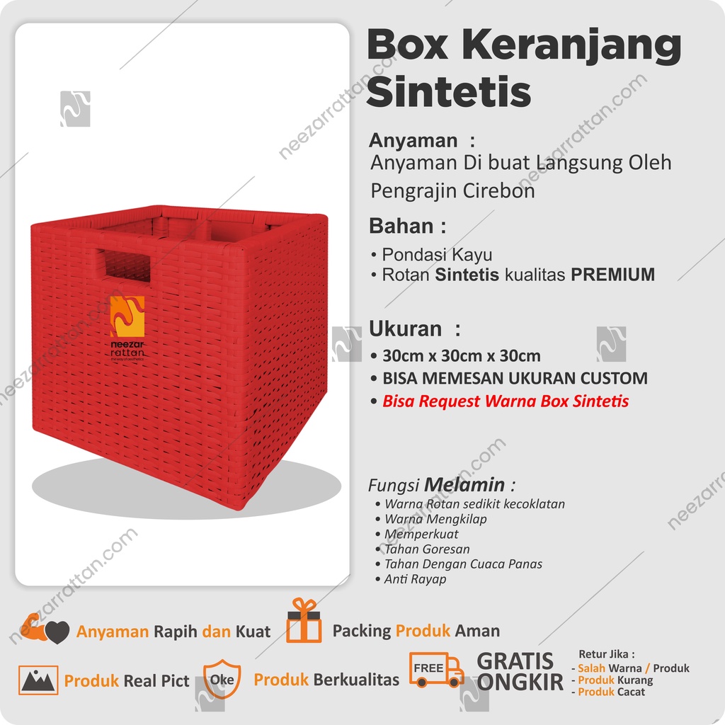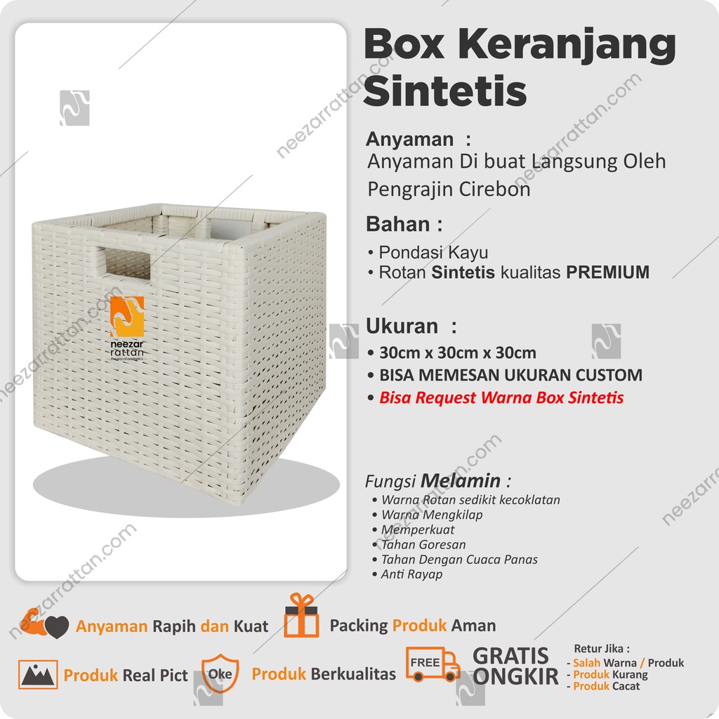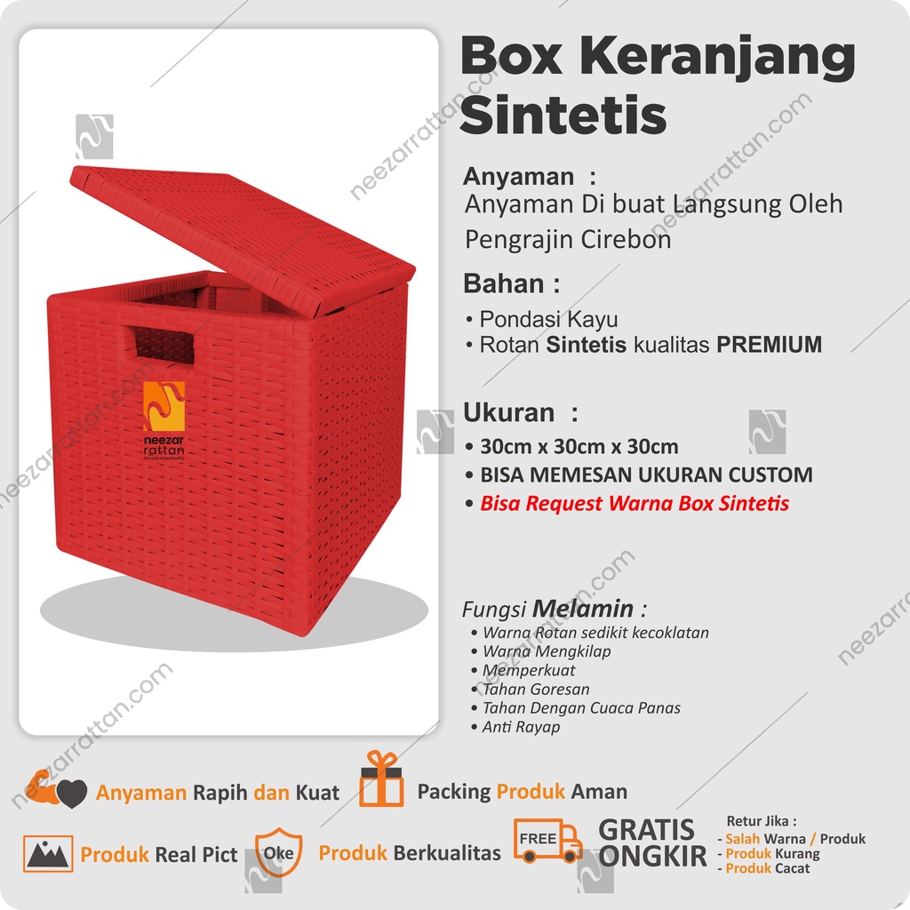 Lombok Woven Lid Rattan Box Basket Rattan Box 30x30x30