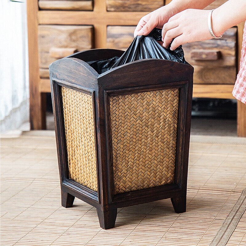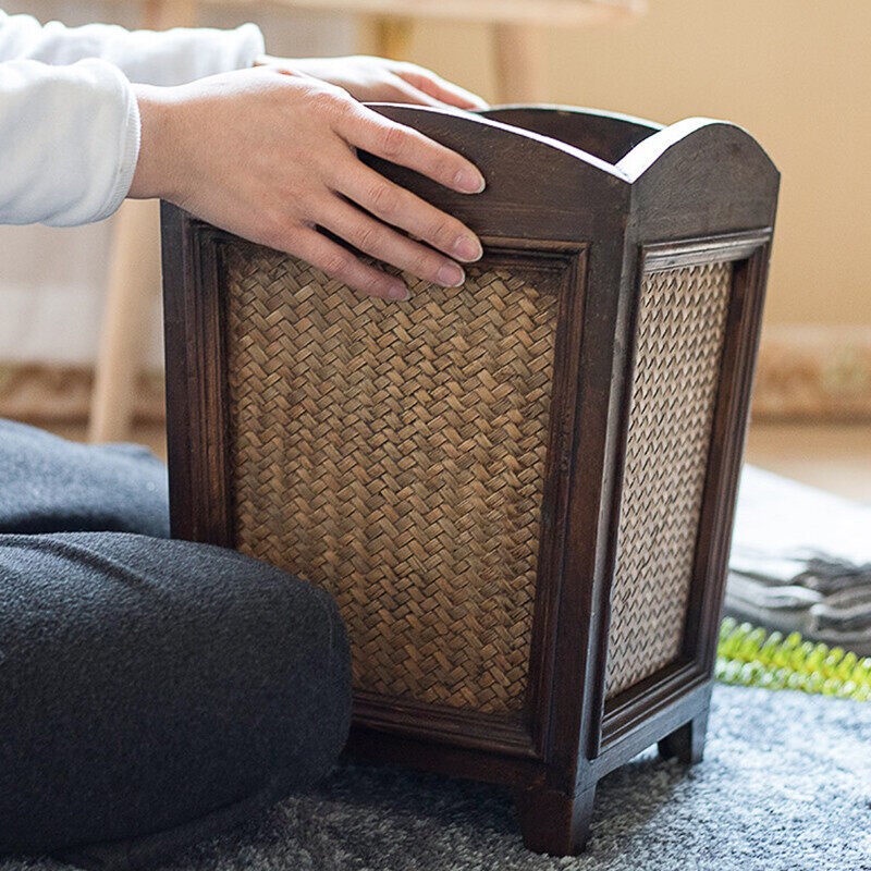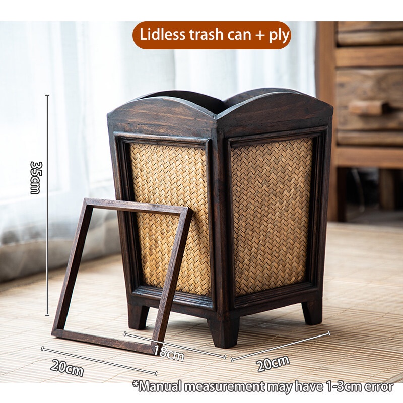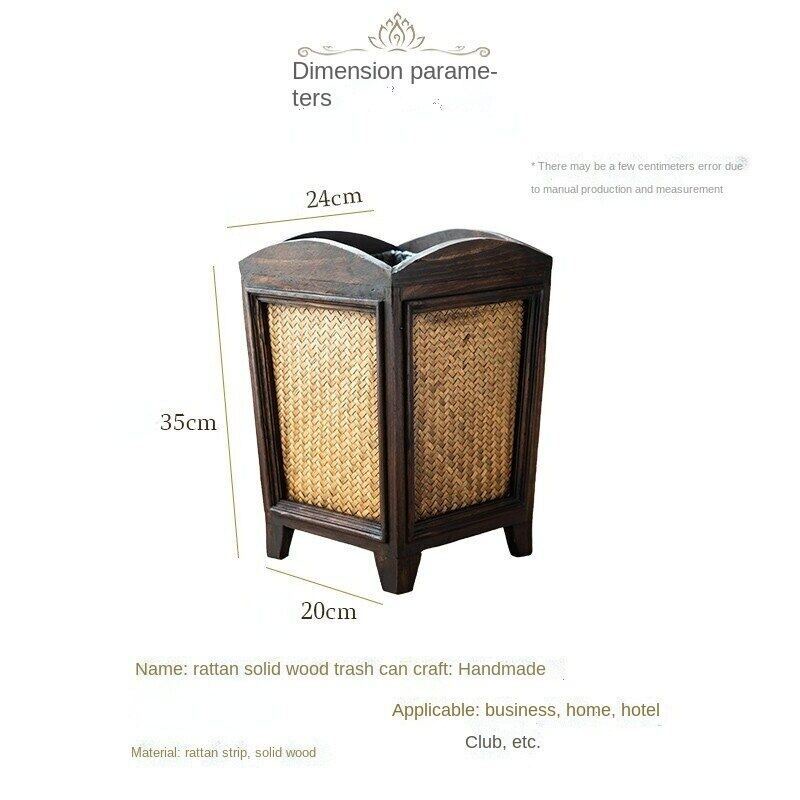 Rattan Trash Bin Hand Woven Trash Bin With Lid Wooden Bathroom Kitchen Decorative Wastepaper Basket