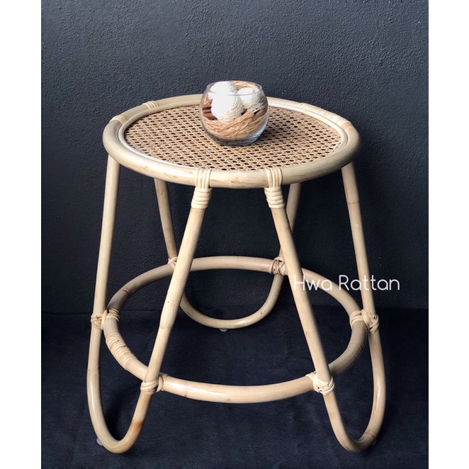 Rattan webbing bedside table cafe garden round coffee table table side woven weaving meja bulat rotan anyaman indoor
