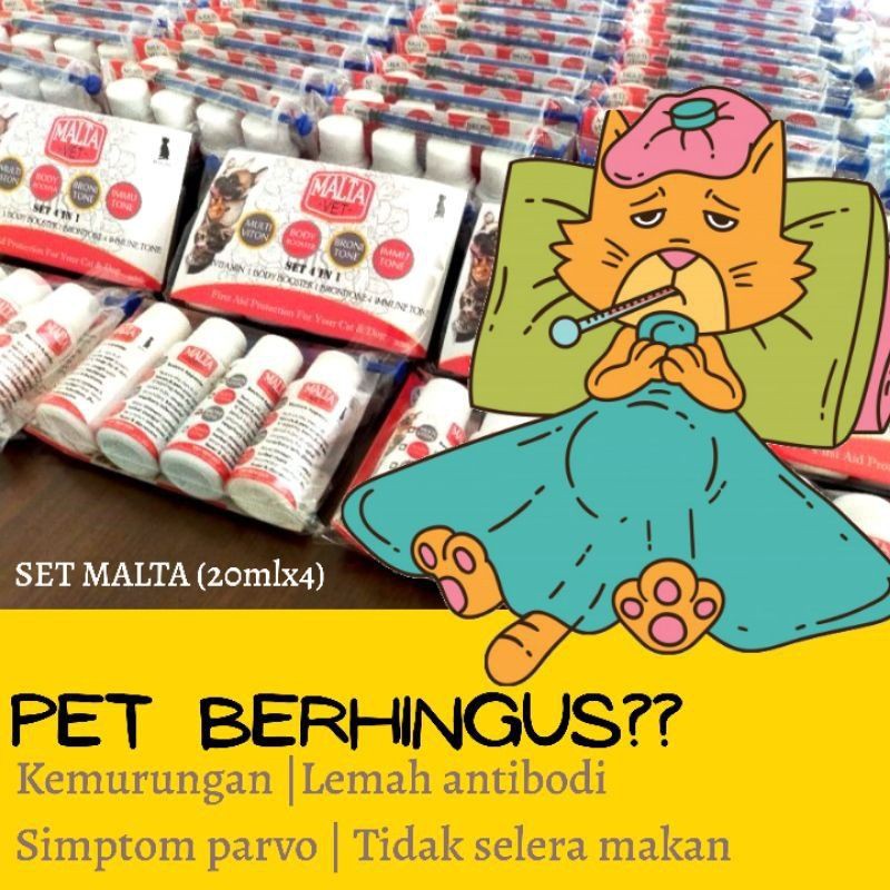 Rawatan Sakit Demam Selsema Batuk, Vitamin pada Kucing & Haiwan Peliharaan (Set Malta 1Set 4Produk)