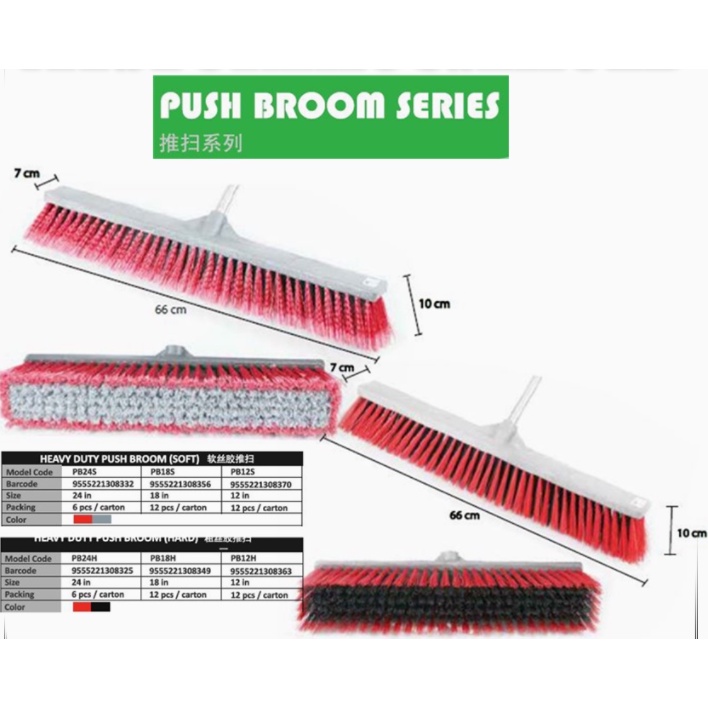 Rayaco Heavy Duty Industrial Push Broom With 5' Alum Handle/Head Only Penyapu Kilang Besar 12" 18" 24" Indoor Outdoor
