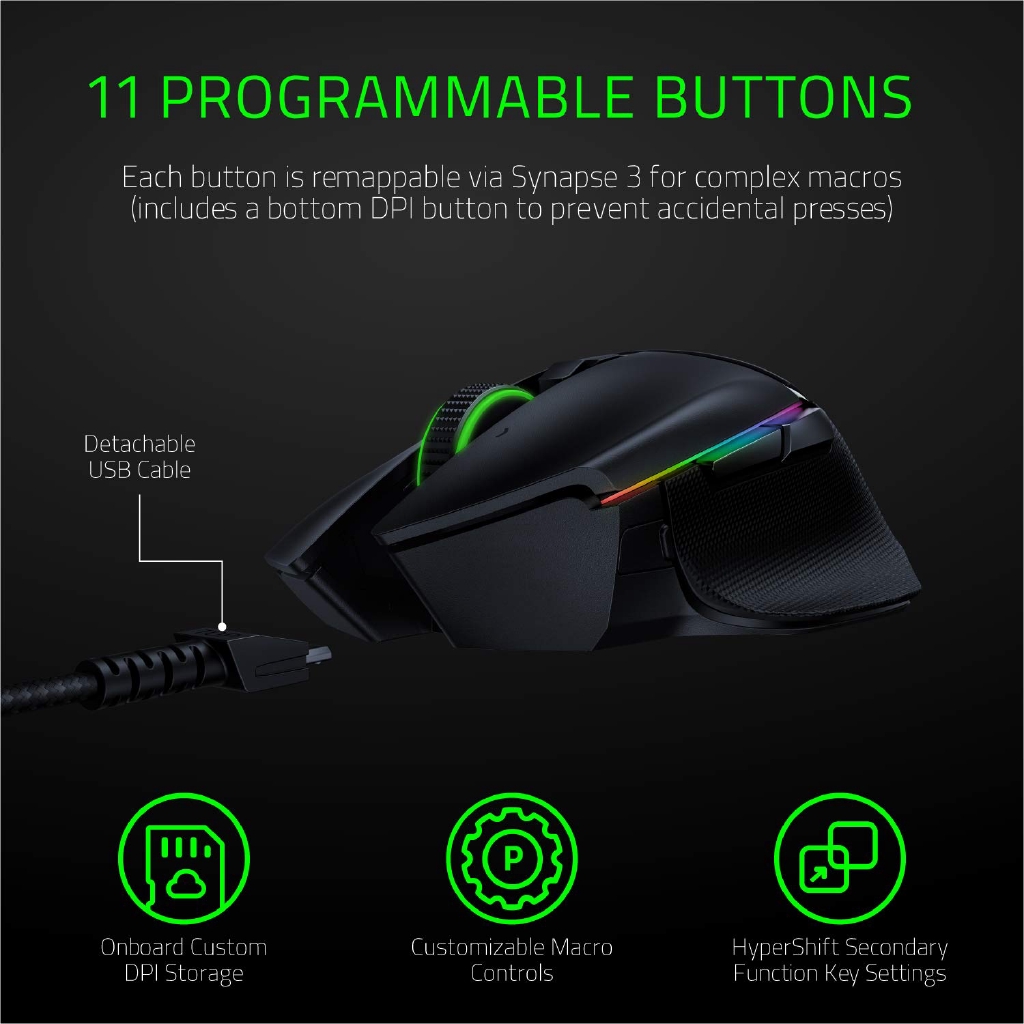 Razer Basilisk Ultimate Hyperspeed Wireless 20K DPI Gaming Mouse 11 Programmable Buttons Chroma Lightning