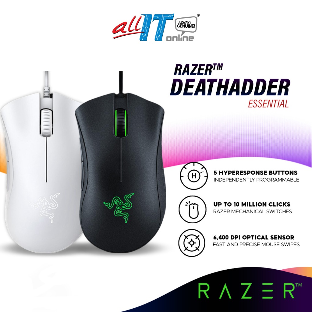 Razer DeathAdder Essential Gaming Mouse | 6400 DPI Optical Sensor | 5 Programmable Buttons (RZ01-03850100-R3M1)