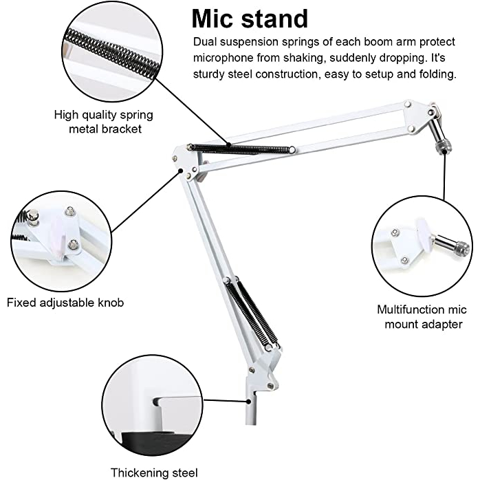 Razer Seiren Mini Boom Arm with Pop Filter - Mic Stand with Foam Cover Windscreen Compatible with Razer Seiren Mini Streaming Microphone(White) by Wanjason