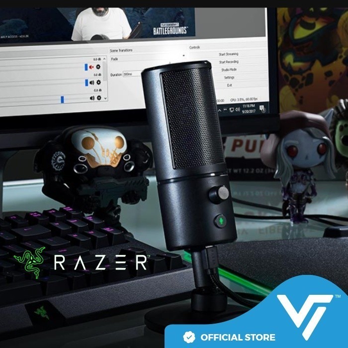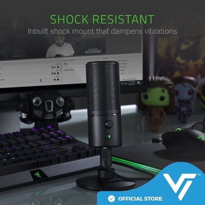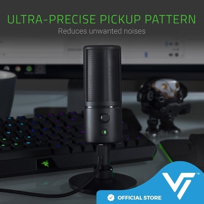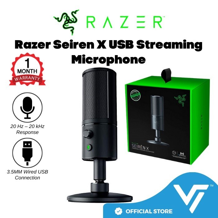 Razer Seiren X Mikrofon Penstriman USB Condenser (Lekap Kejutan Terbina dalam, Corak Pengambilan Supercardiod, 1Y)