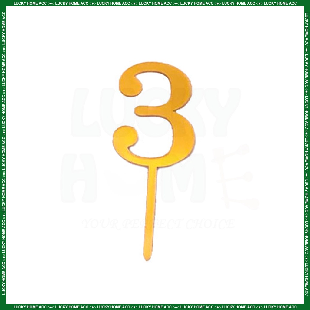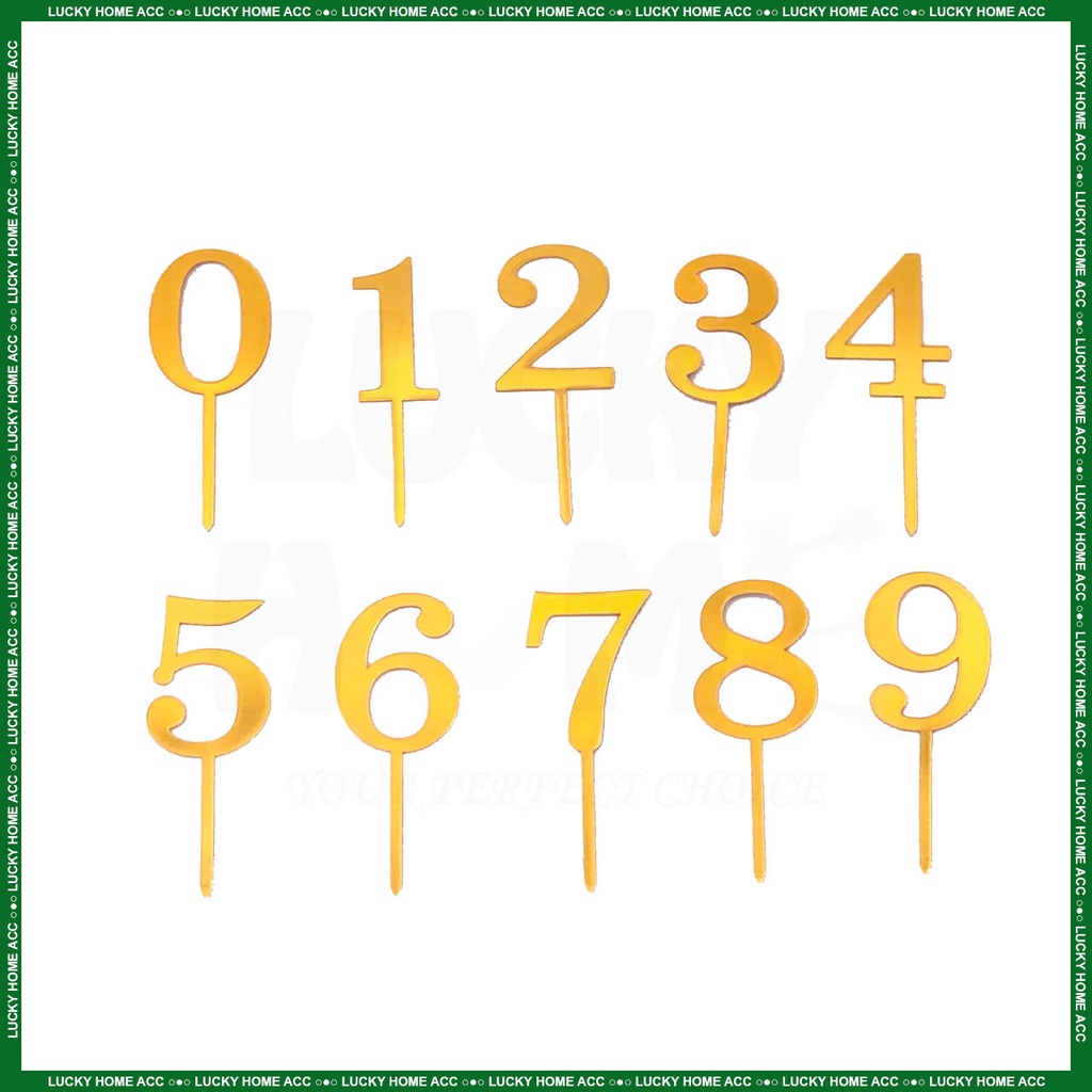 Ready Stock!!! Acrylic Number Topper 0 - 9 Cake Topper Gold Colour Birthday Cake Decorations Numerical Topper Nombor Kek