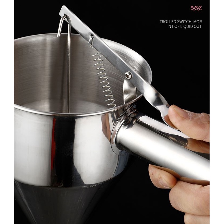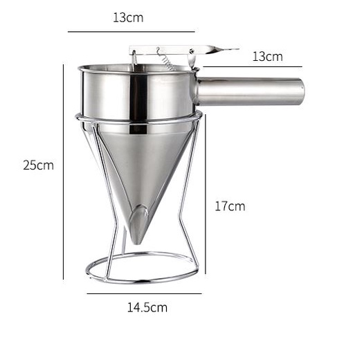 Ready Stock!!! Stainless Steel Funnel Batter Dispenser Pancake Waffle Takoyaki Batter Dispenser with Stand Holder