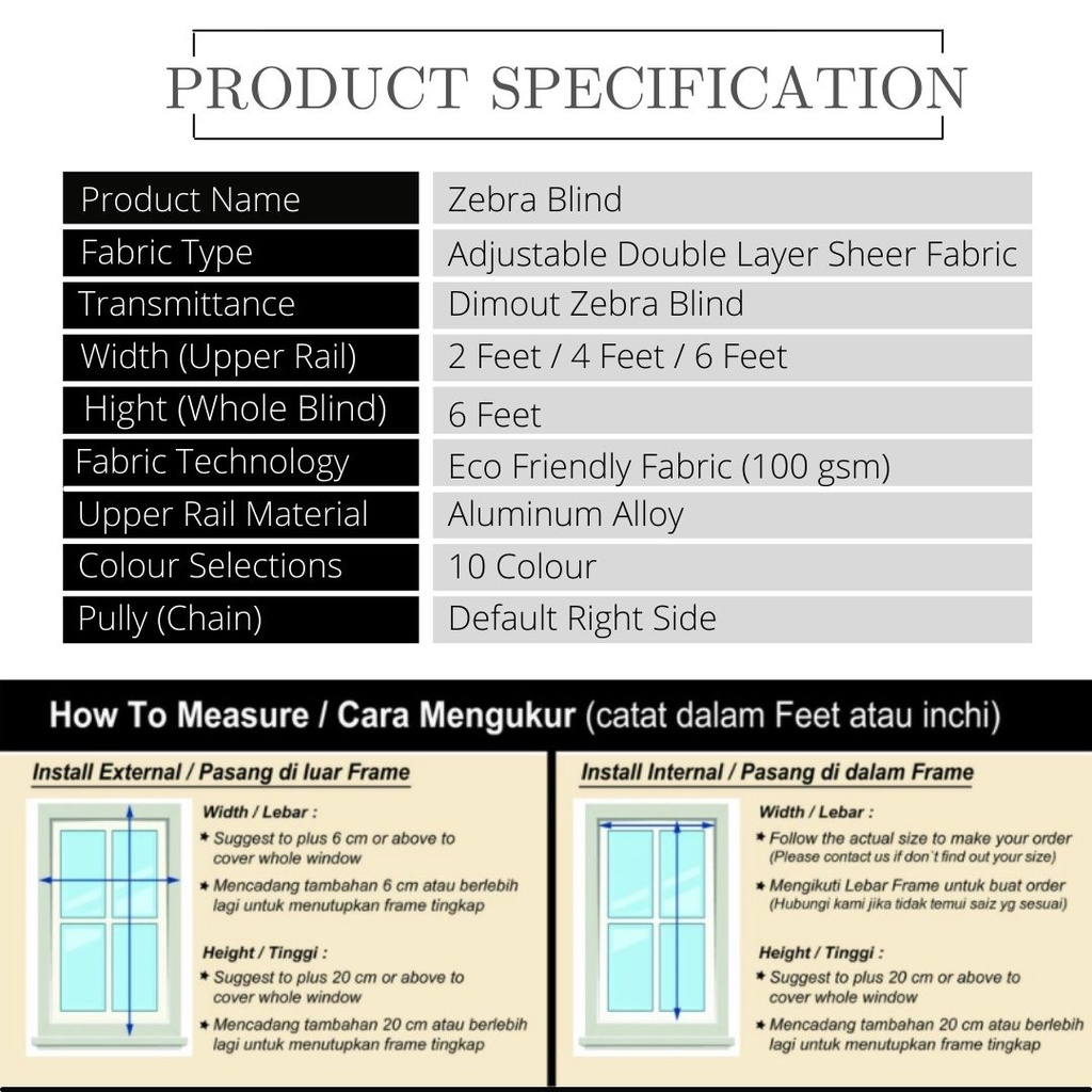Ready Stock!!! Zebra Blind / Langsir Bidai Korea / Hight 6 Feet / Free Screw & Wall Plug Blind Window Blind