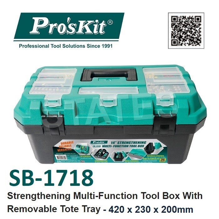 Ready Stock!! Pro'sKit SB-1718 420mm Strengthening Multi-Function Tool Box With Removable Tote Tray