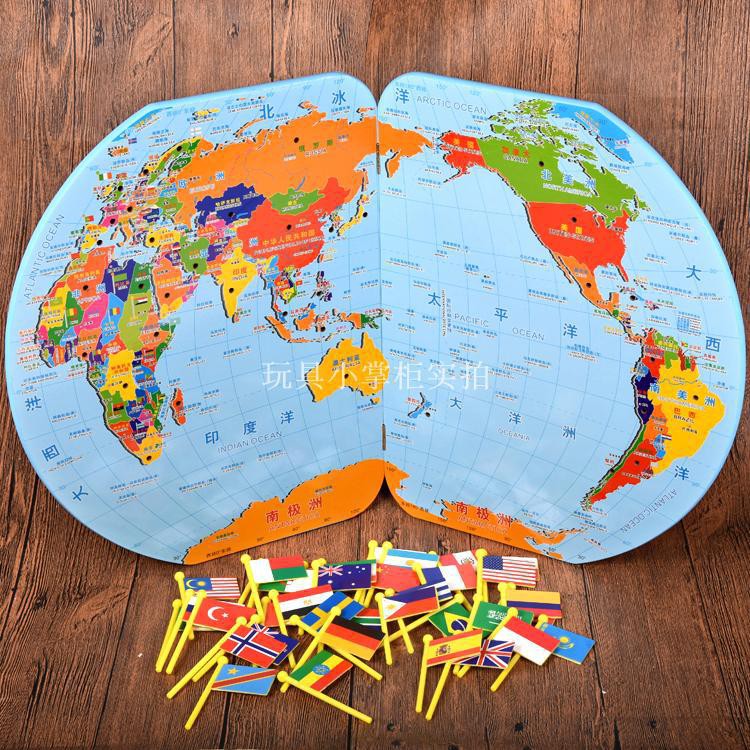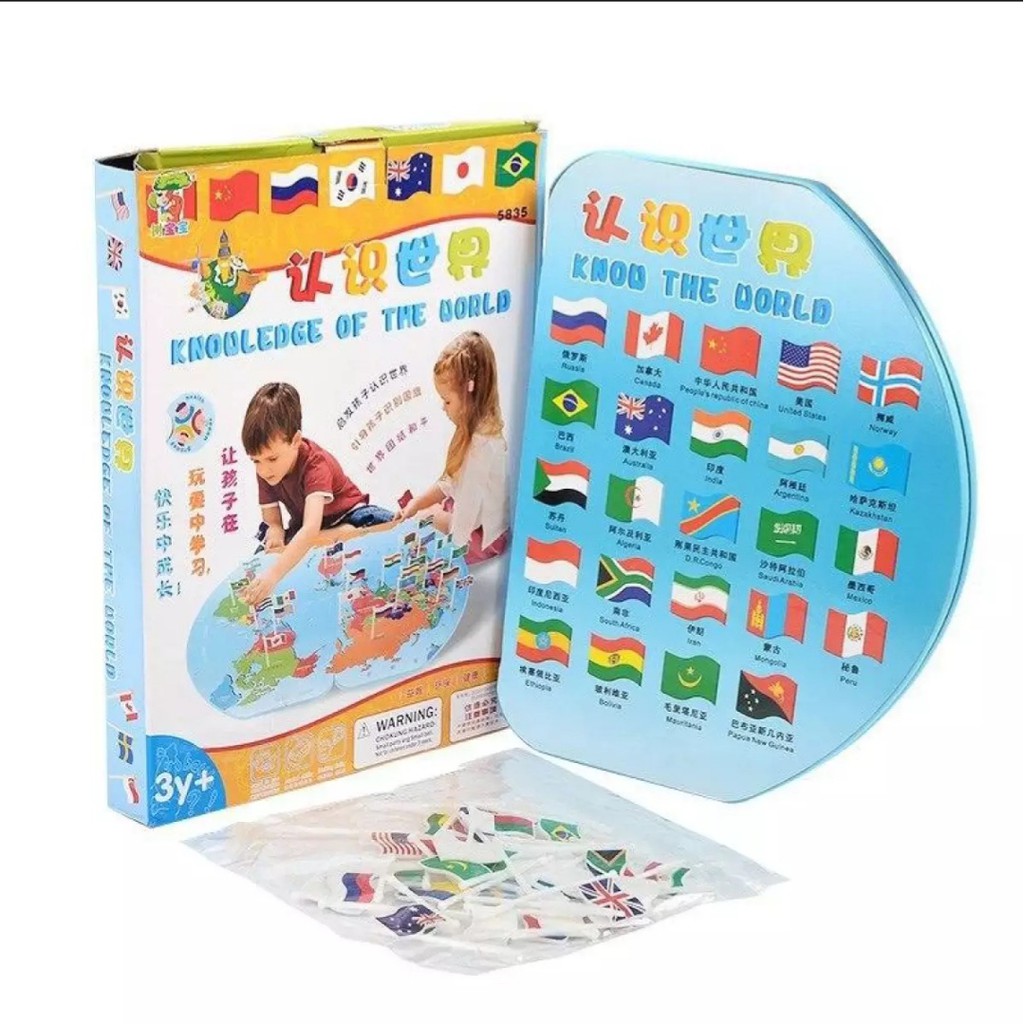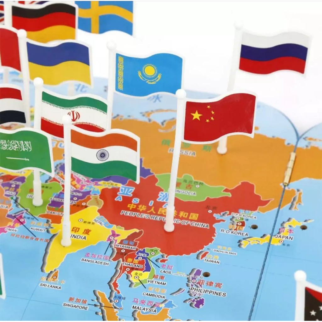 Ready Stock! Kids Interative Play & Learn Cognitive School Education Material 3D National Flag World Map Geographic Toy