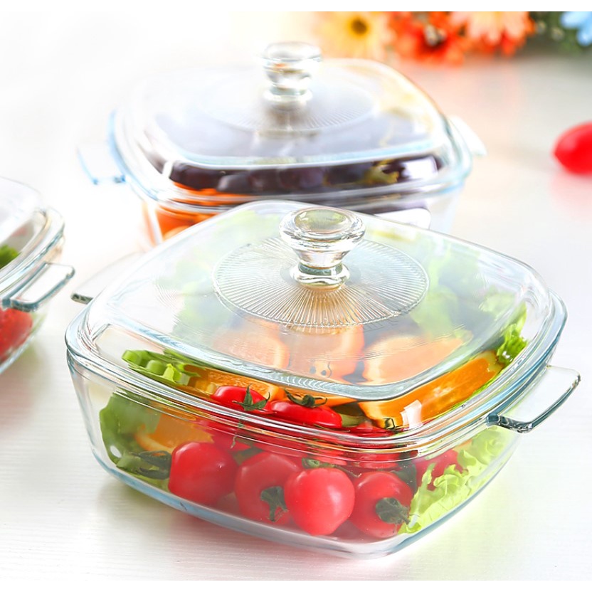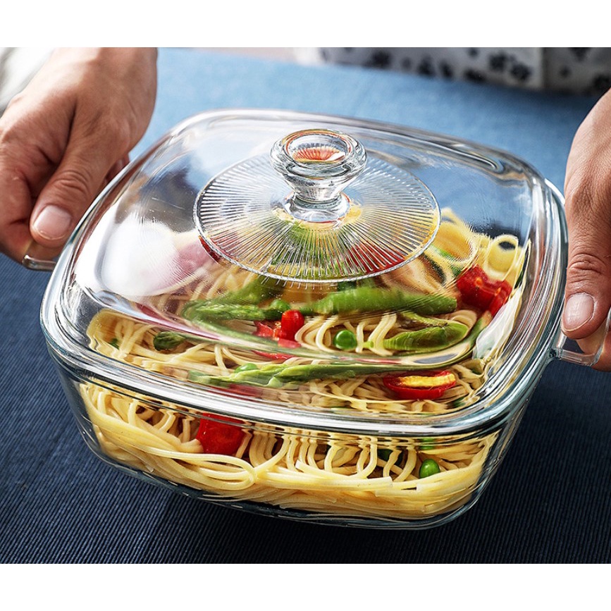 Ready Stock! Transparent Glass Pot with Lid Microwave Friendly Tempered Glass Thick Pot Dish Pot 0.8/ 1.2/ 1.5L