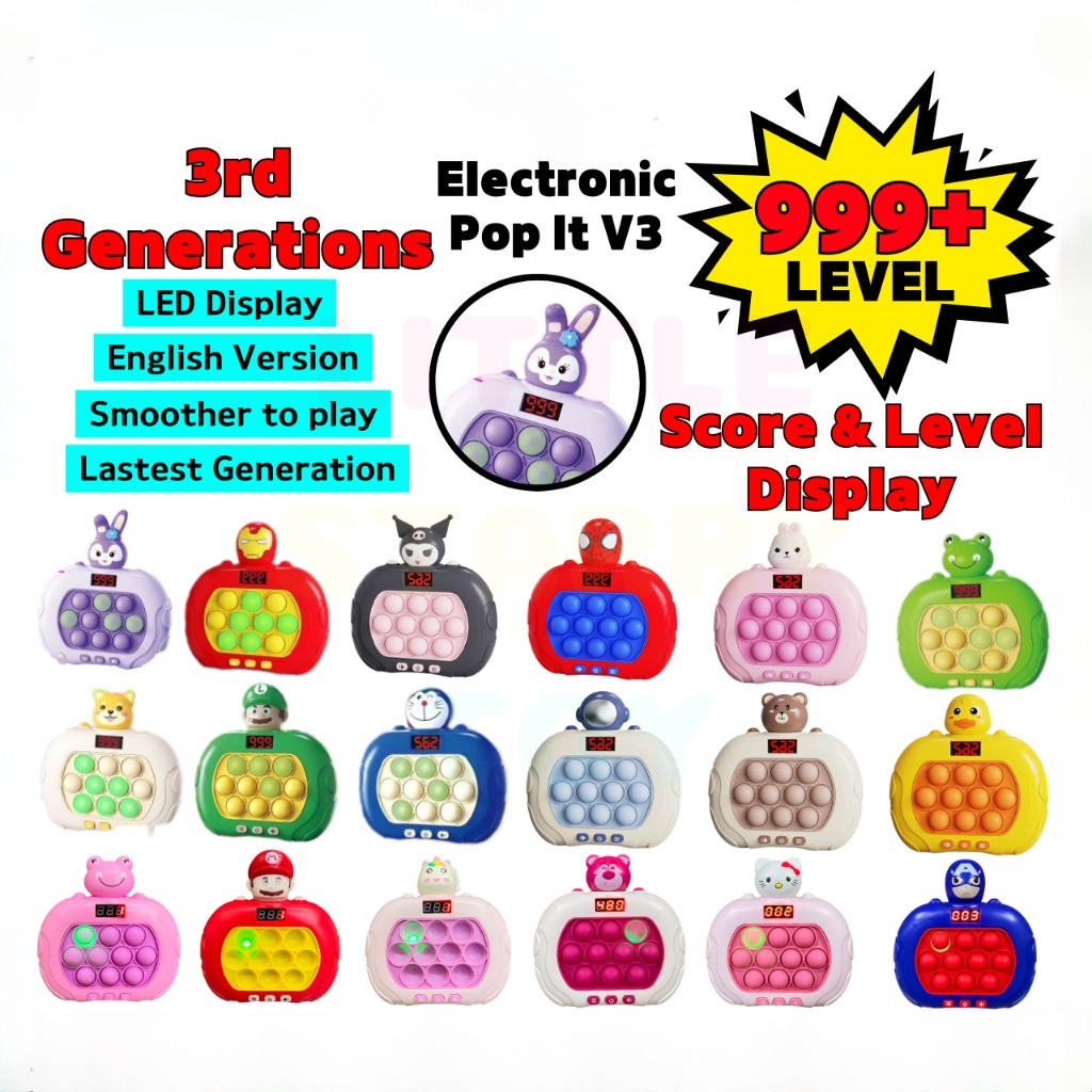 Ready Stock !!! [ Display Screen ] 999 Level Pop It Electronic Quick Game Speed Push Game Electronic Fidget Widget Toy