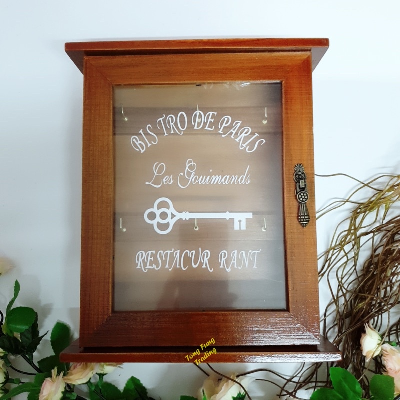 Ready Stock 21x6x25cm Classic Key Cabinet Wooden Holder Storage Box with 6 Hooks Decorative Key Rack Wall