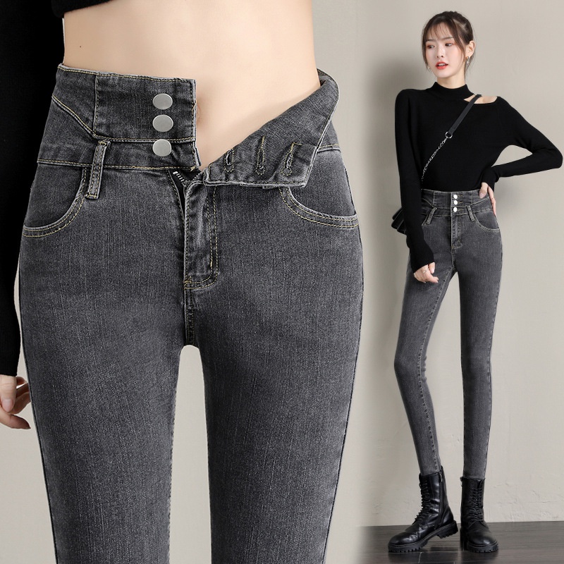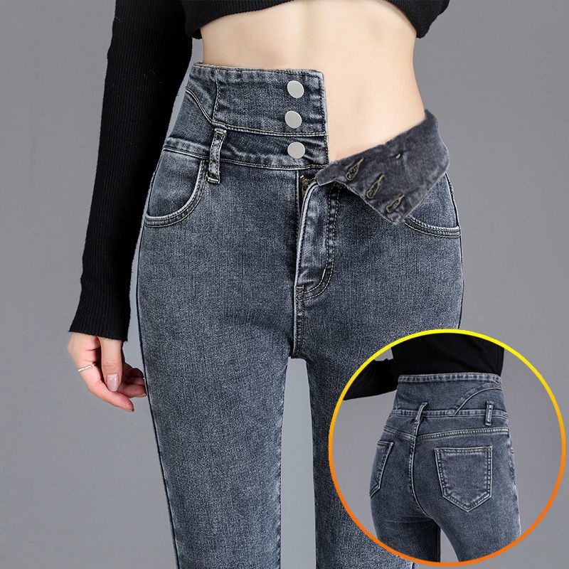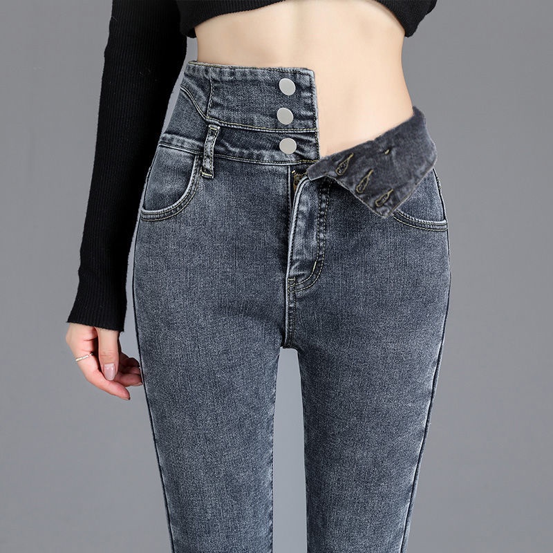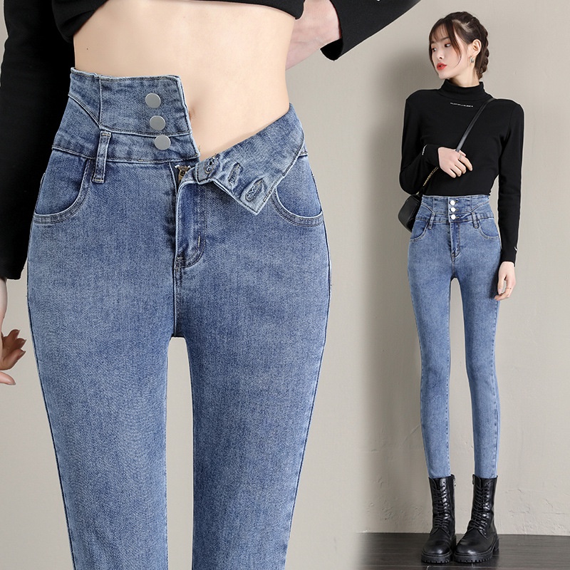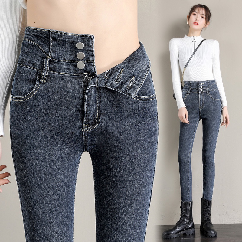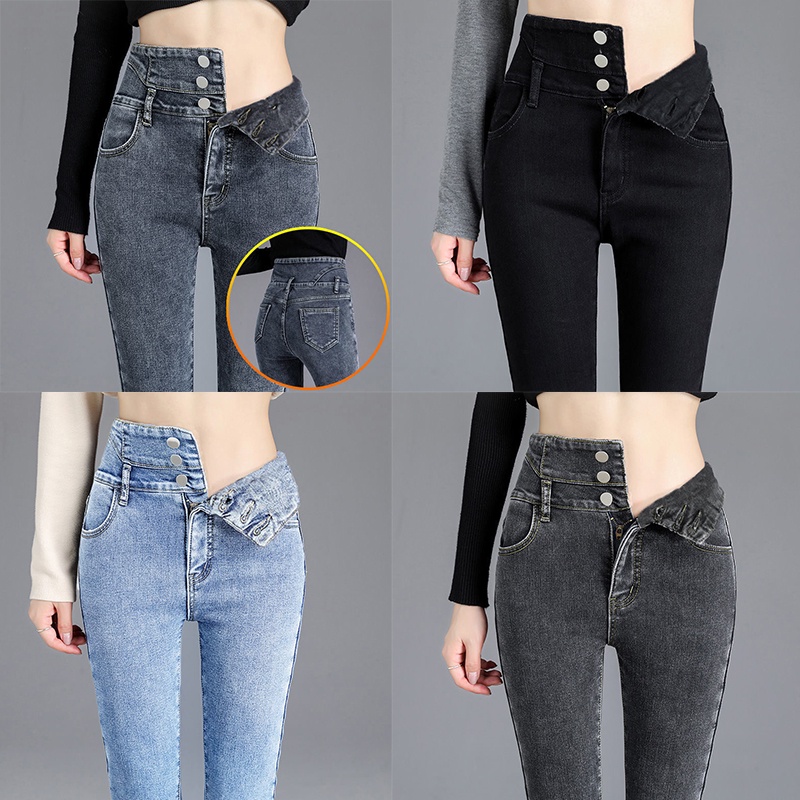 Ready Stock 26-32 Size Women's Jeans High Waist Jeans 3 Buttons Stretch Denim Pants for Women Long Skinny Pants Casual NZK08