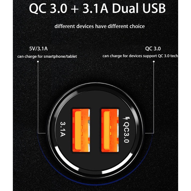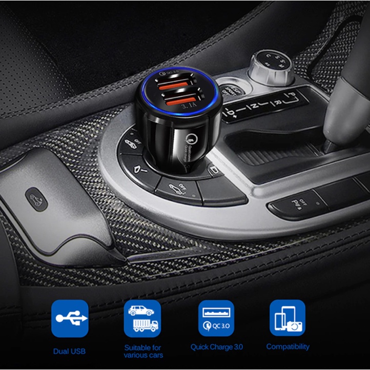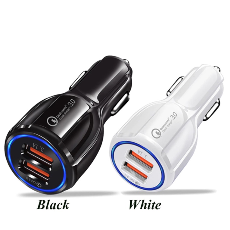 Ready Stock 3.0W Quick Charge 3.0 Dual USB Car Charger 5V6A Turbo Fast Car Charging Mobile Phone Charger PLUG KERETA