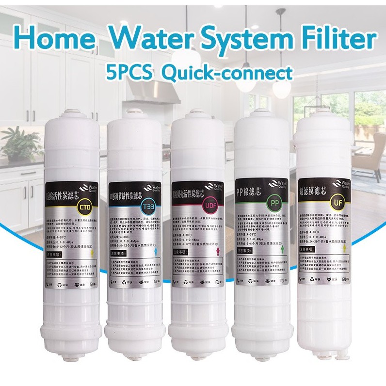 Ready Stock- 5 pcs 10 inch Reverse Osmosis RO Water Filters Replacement Set Water Filter Cartridge PP+CTO+UDF+UF+T33