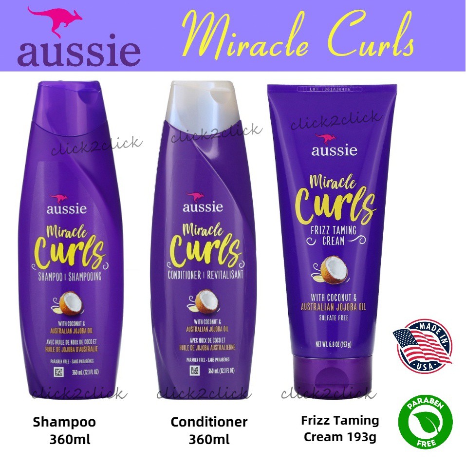 Ready Stock Aussie Miracle Curls Shampoo/ Conditioner/ Frizz Taming Cream-Coconut & Jojoba Oil