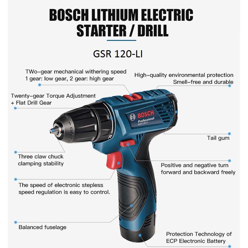 Ready Stock Bosch Rechargeable Drill Household Hand Drill 12V Electric Screwdriver Tool Pistol Drill GSR120-LI Toolbox