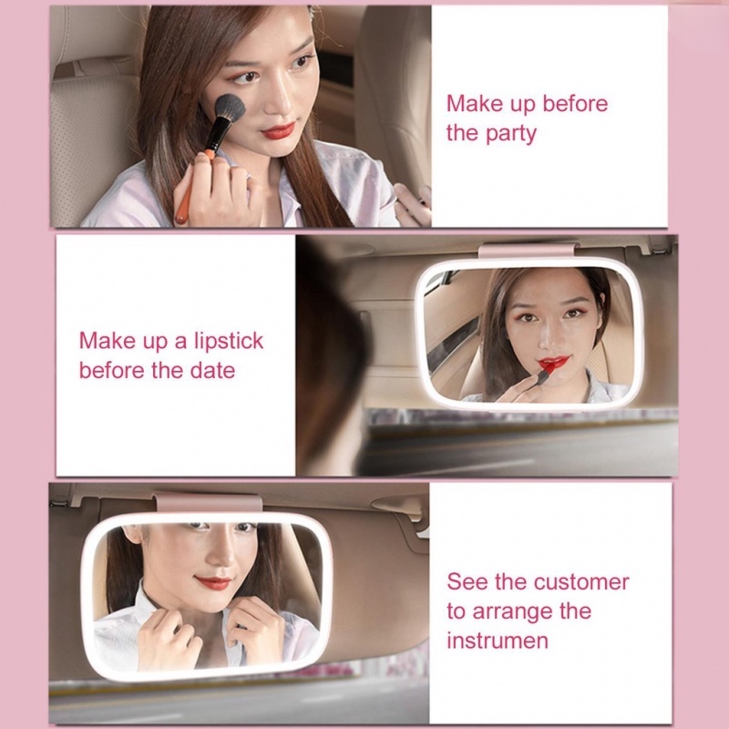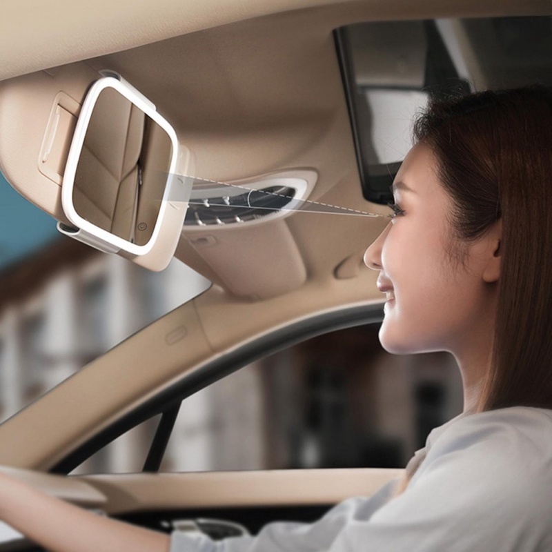 Ready Stock Car Make up Mirror LED Light + Car Sun Visor Rear View Mirror Adjustable Universal Car Inner Clip Window Makeup Mirror Cermin Mekap Tingkap Kereta