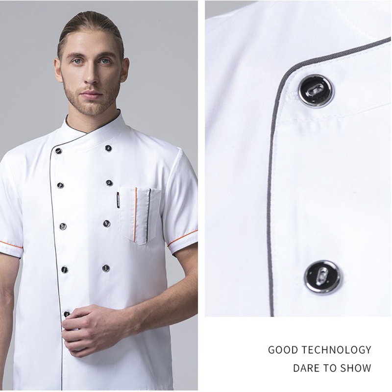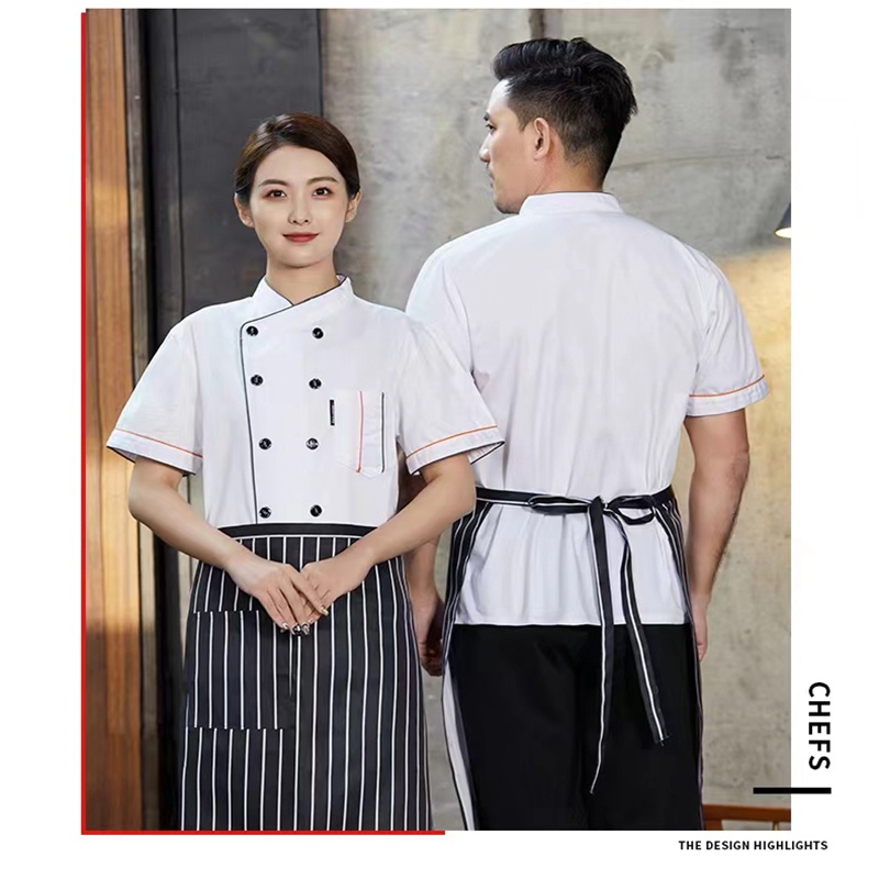 Ready Stock Chef clothing short-sleeved breathable kitchen cooking back kitchen work clothes catering hot pot restaurant black chef overalls unisex chef jacket