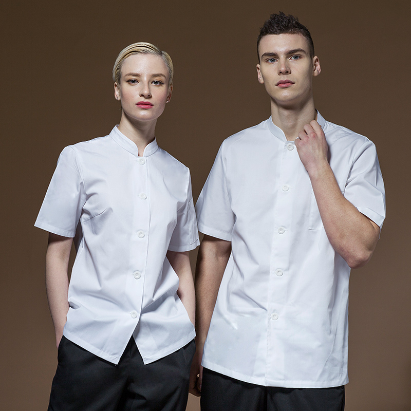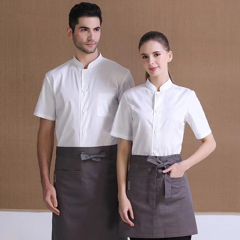 Ready Stock Chef uniform black men's short-sleeved kitchen hotel catering kitchen tooling white chef uniform female breathable work uniform enlarged loose version school uniform