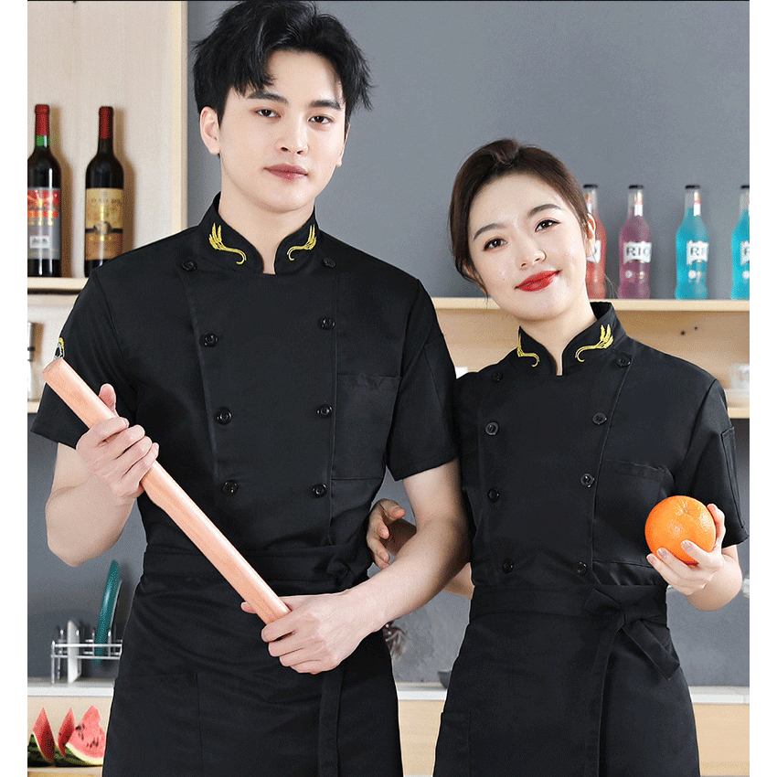 Ready Stock Chef work uniform short-sleeved male thin section breathable Baju chef restaurant hotel chef chef uniform baju chef perempuan custom Chef Jacket black school uniform