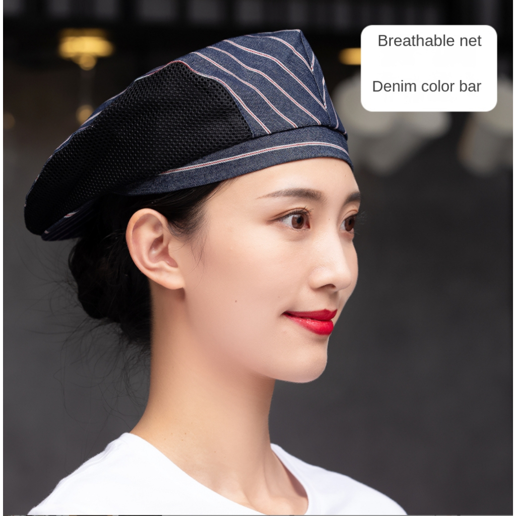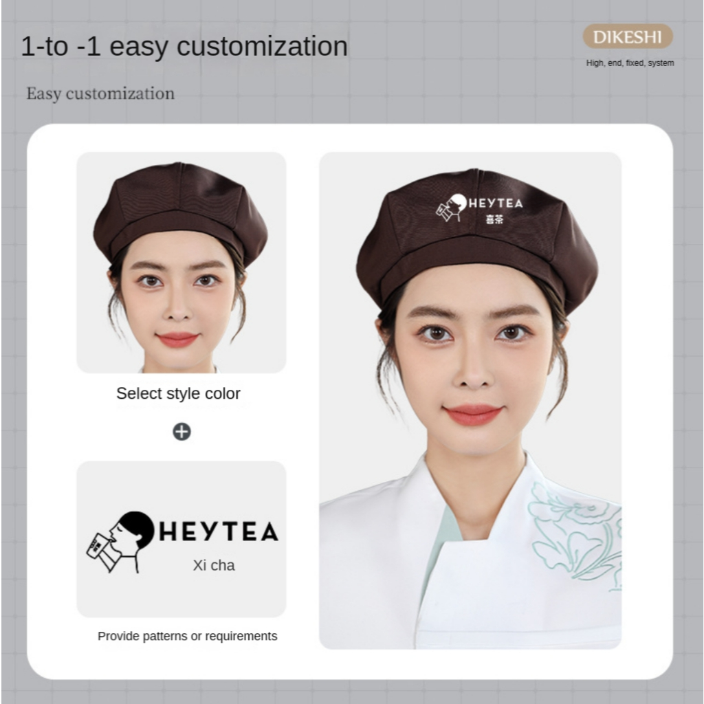 Ready Stock Customized LOGO chef hat breathable dustproof kitchen hat men's chef hat restaurant work hat set cap chef