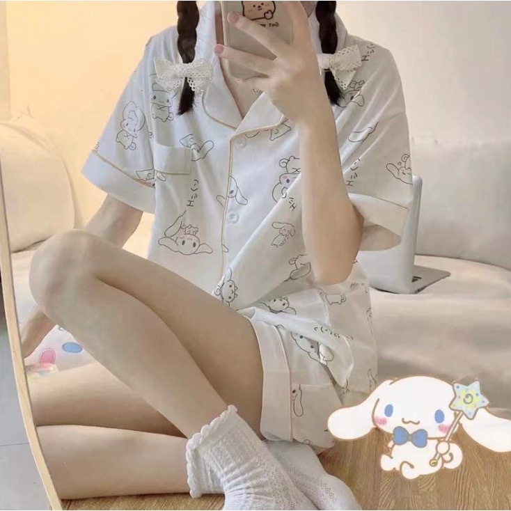 Ready Stock Cute Cartoon Cotton Pajamas Pyjamas Soft Fabric Comfortable Casual Loose Sleepwear Nightwear Baju Tidur P1