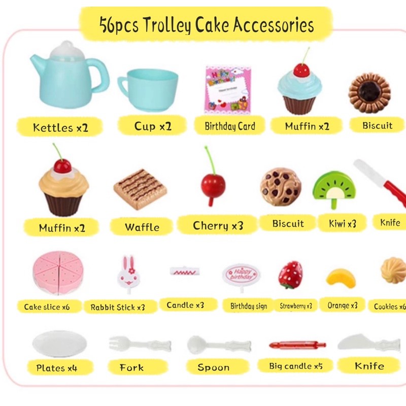 Ready Stock DIY Trolley Birthday Cake Toys Kids Trolley Playset Pretend Play DIY cake toys trolley