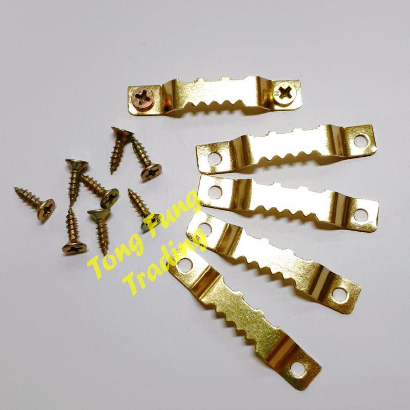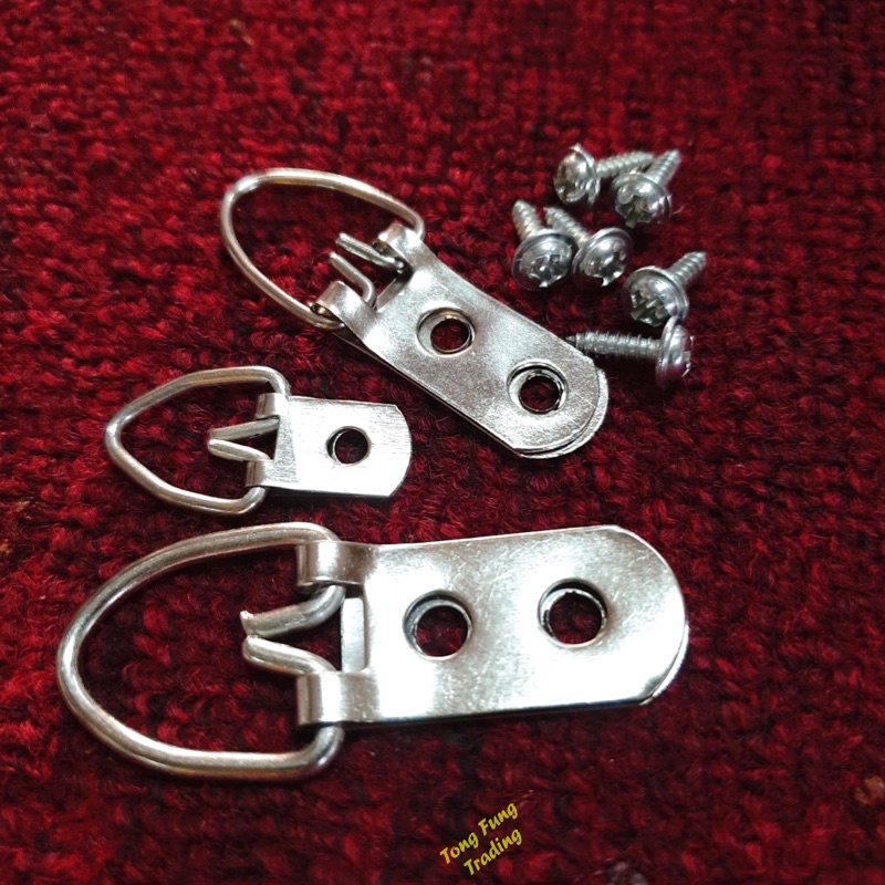 Ready Stock Frame Picture Hook Hanging Bracket Silver Brass Triangle DRing Hook Nail Paku Hanger Canvas Oil Wall Screw
