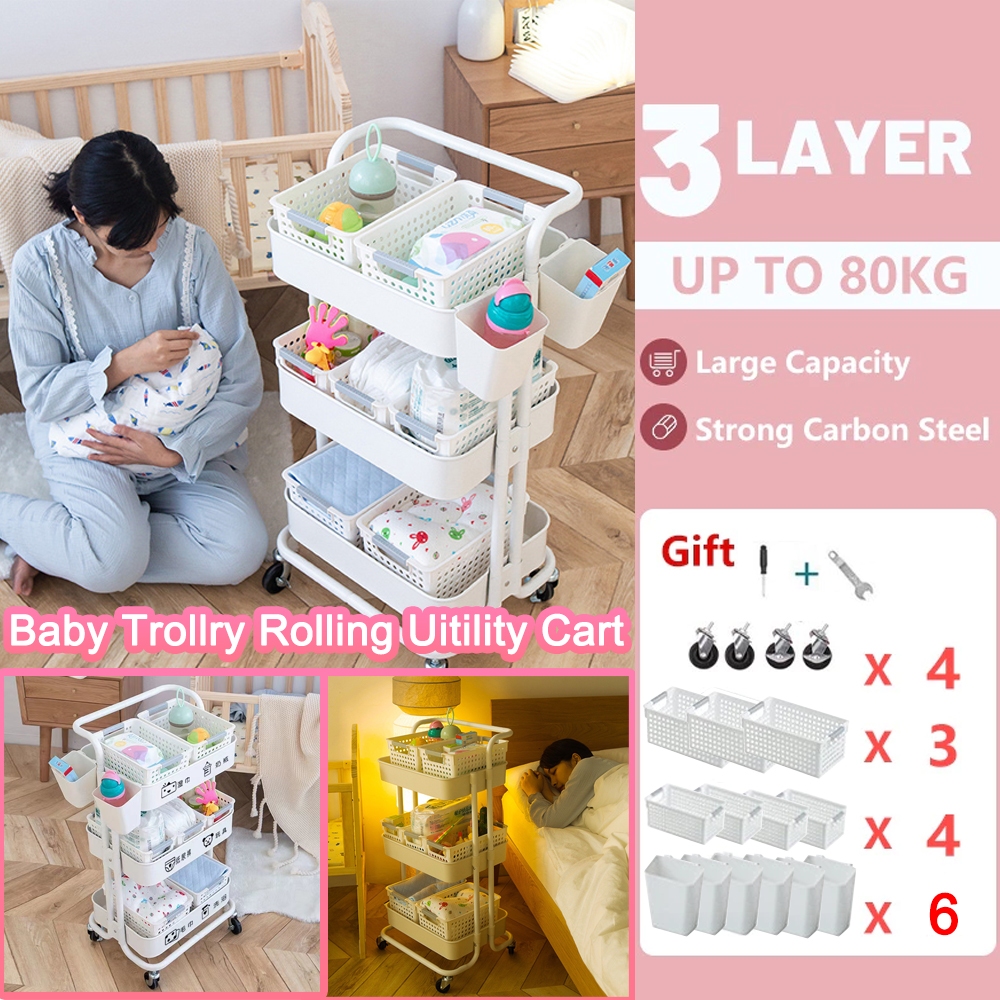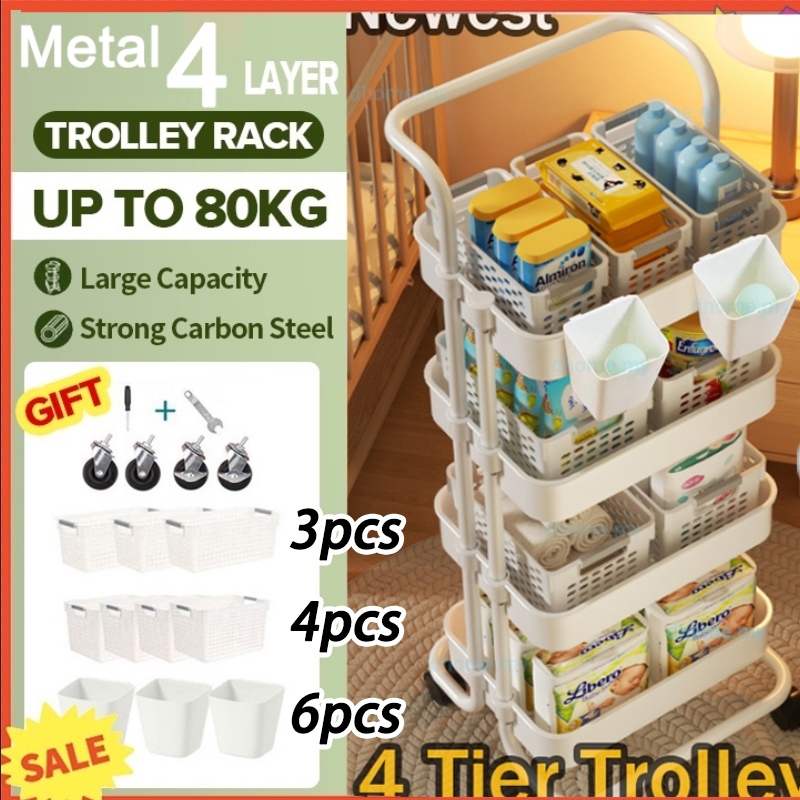 Ready Stock Full Set 4 tier Trolley Rack Quality Baby Storage Rack Multipurpose Storage Trolley 4 Layers Storage Trolley