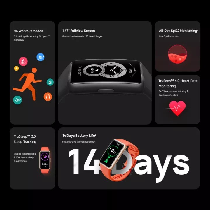 READY STOCK-HUAWEI Band 6 Smart band Smartwatch 1.47" Screen 14 Waterproof Bluetooth