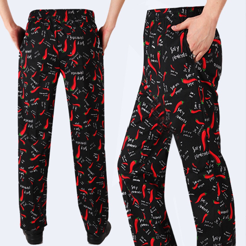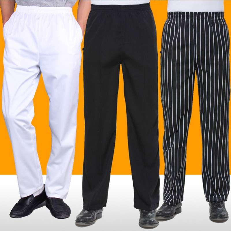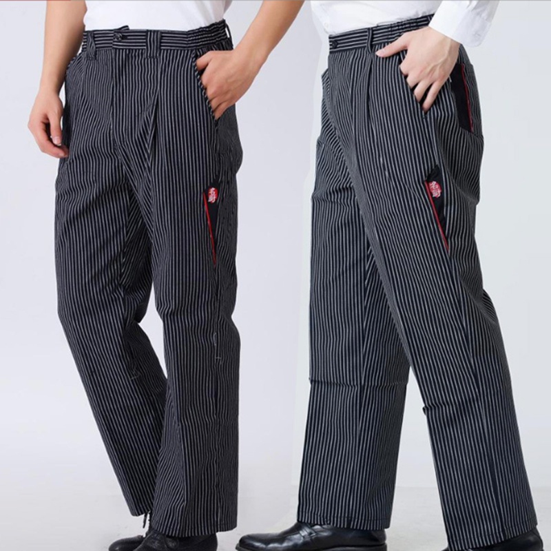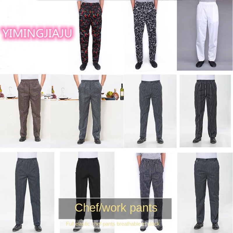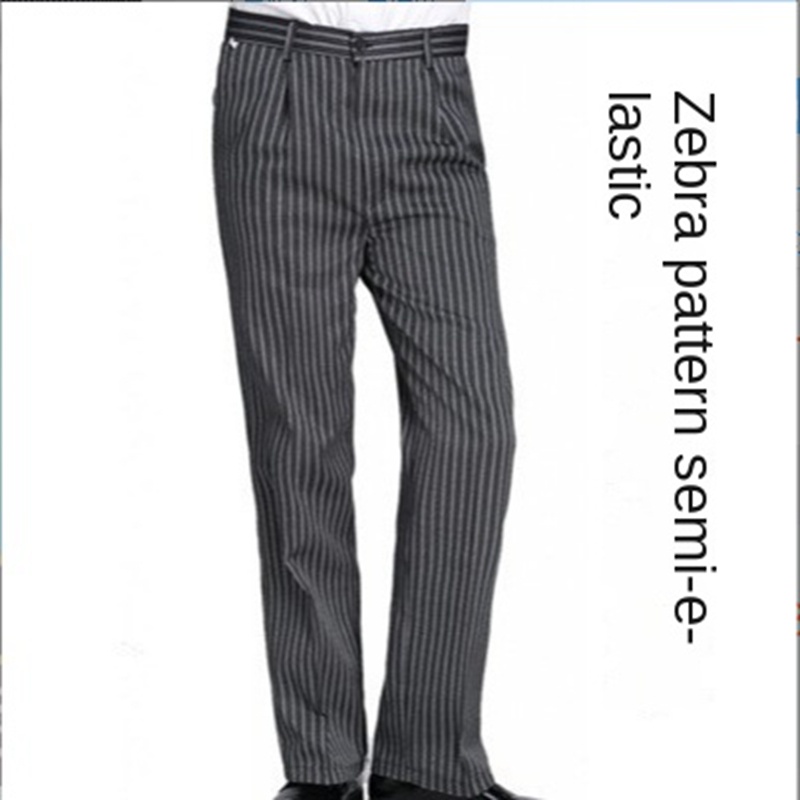 Ready Stock Hotel chef work pants plus size elastic uniform pants barista work pants restaurant catering restaurant kitchen stripe print work uniform pants
