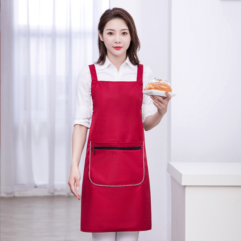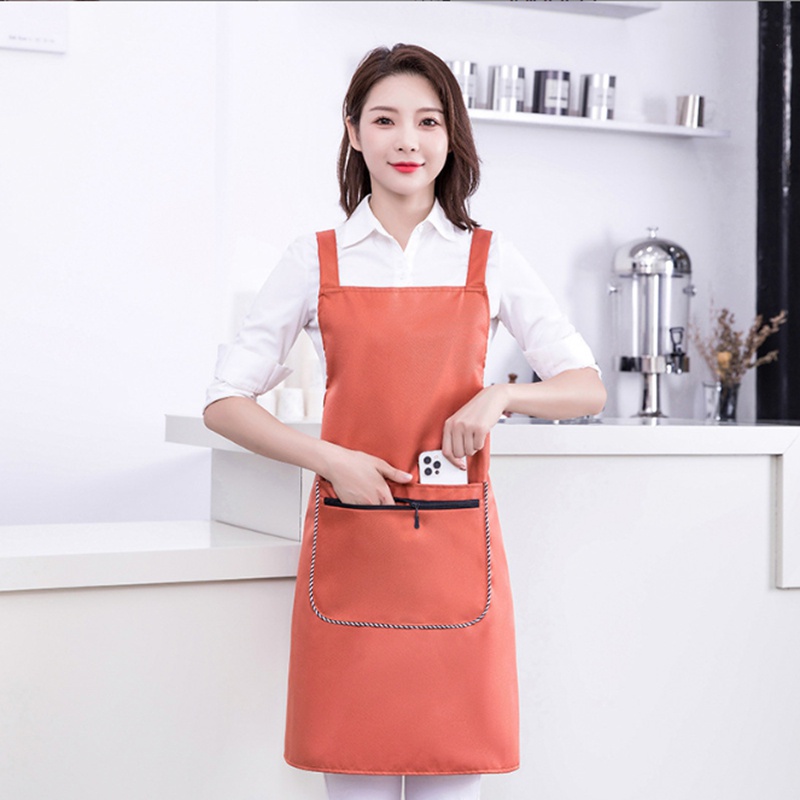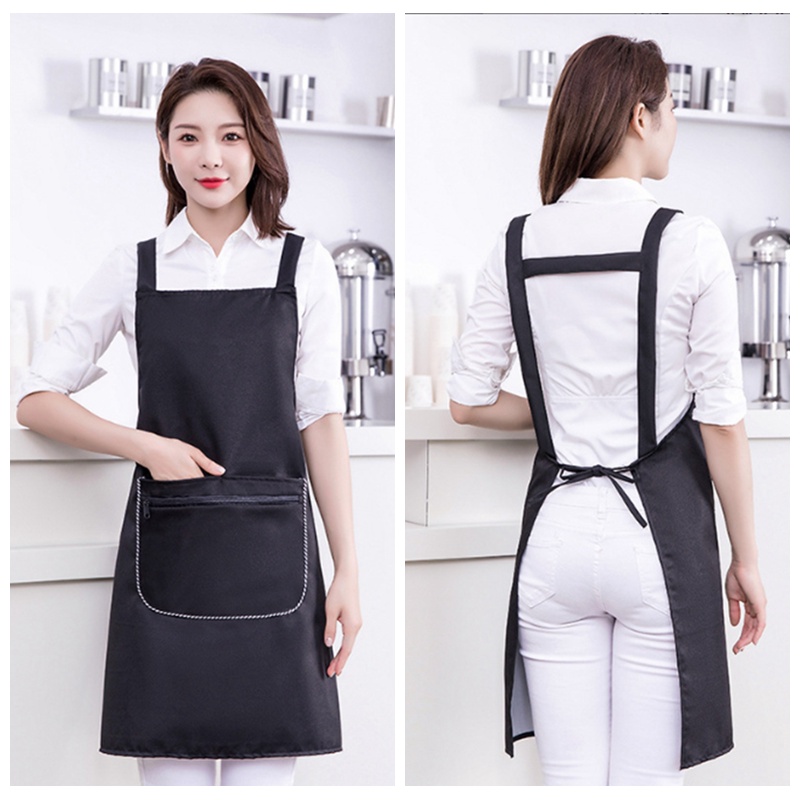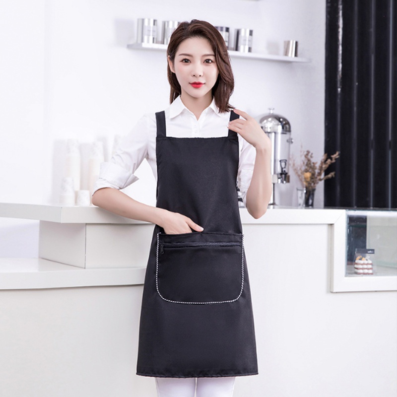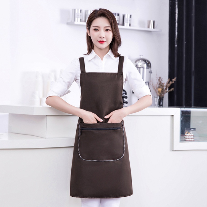 Ready Stock Kitchen waterproof apron printed logo apron coffee shop restaurant hotel work apron barista apron chef apron strap pocket apron