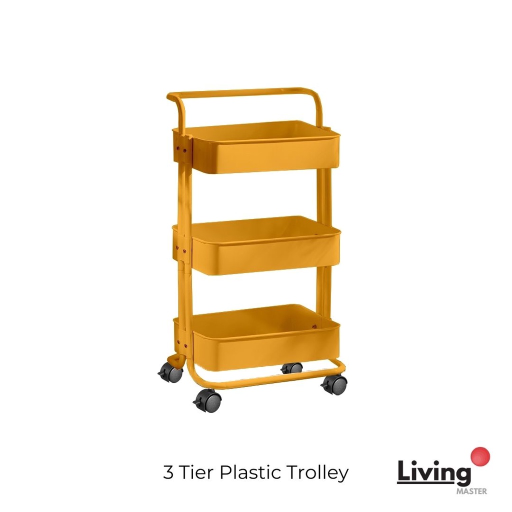 Multi-Purpose 3 Tier Plastic Trolley Utility Cart Rolling Trolley Rolling Utility Cart Home Storage Shelf