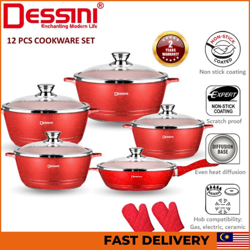 Ready Stock Original Dessini 12pcs Cookware Set / Non Stick Pot Dessini 12pcs set periuk / Periuk Dessini Tak Melekat